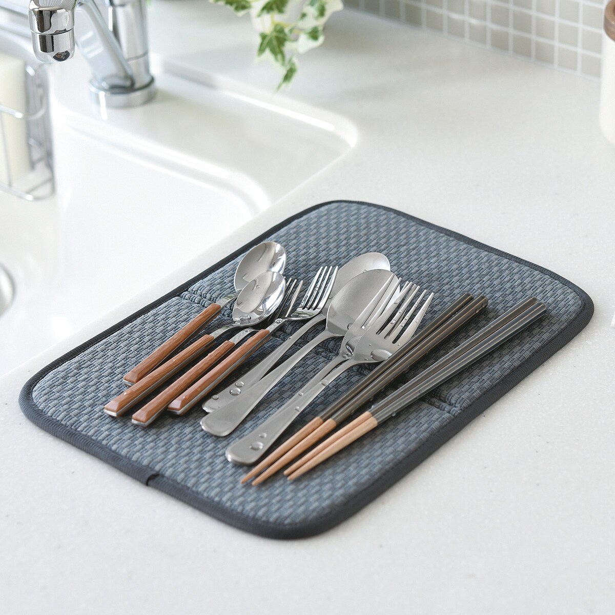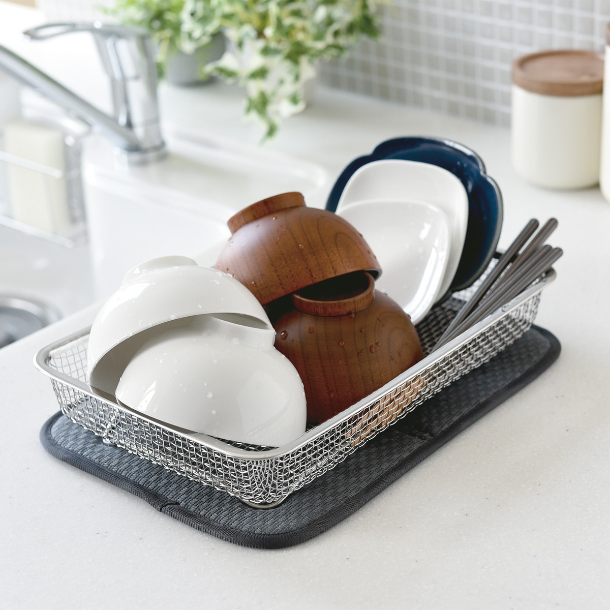 目が細かいのでカトラリーや箸など、小さなものも落ちる事なく使用できます。