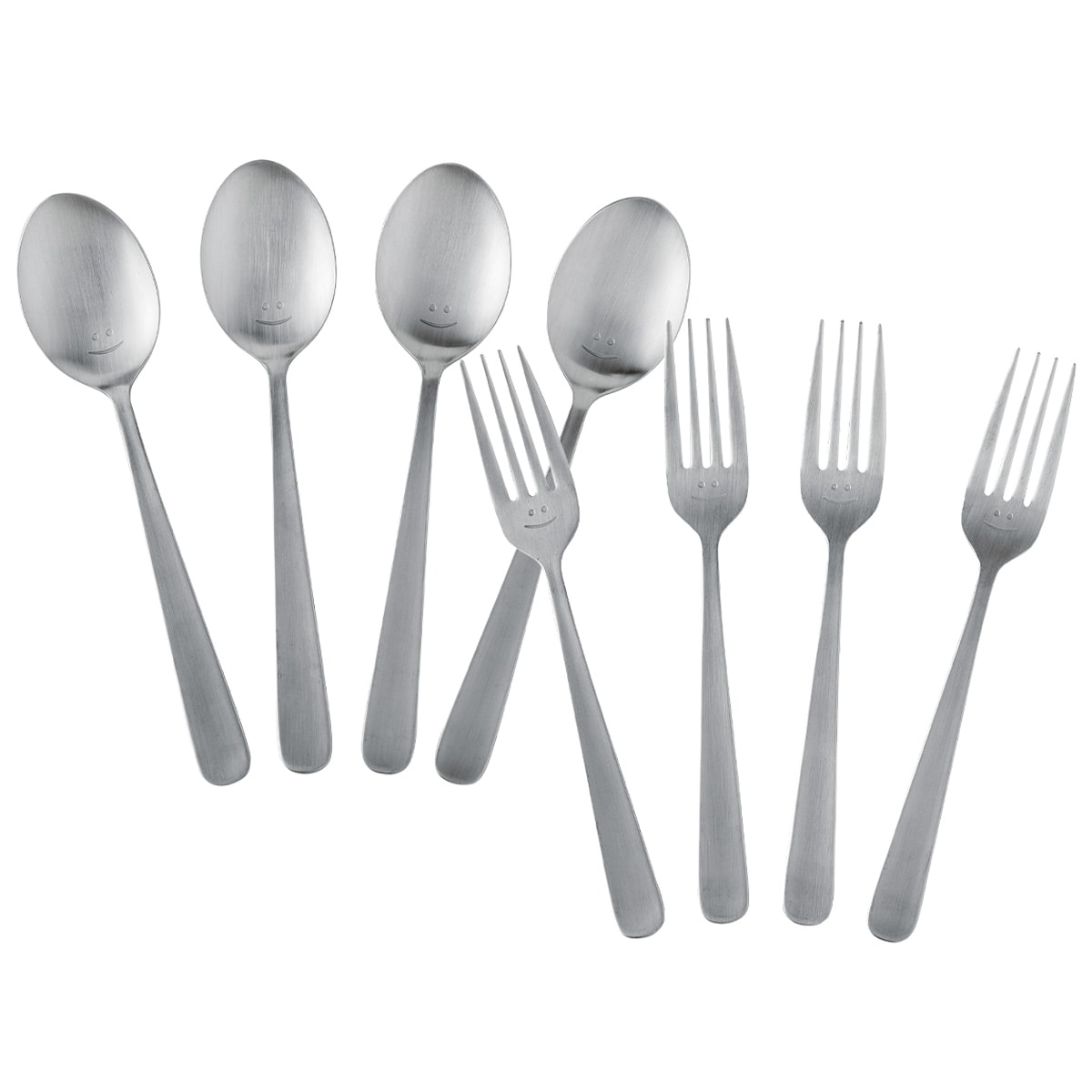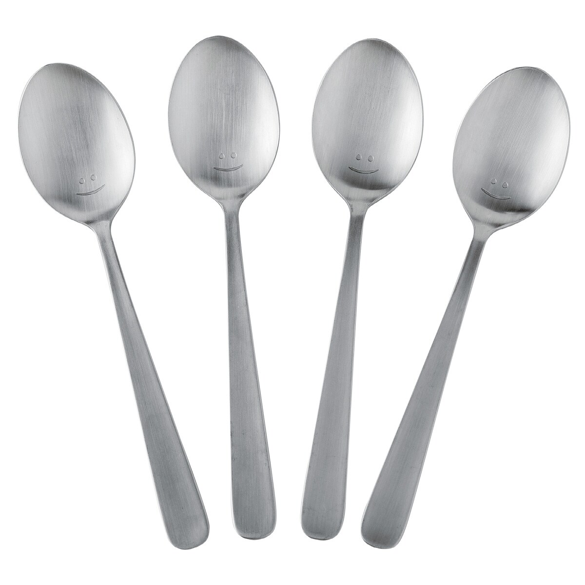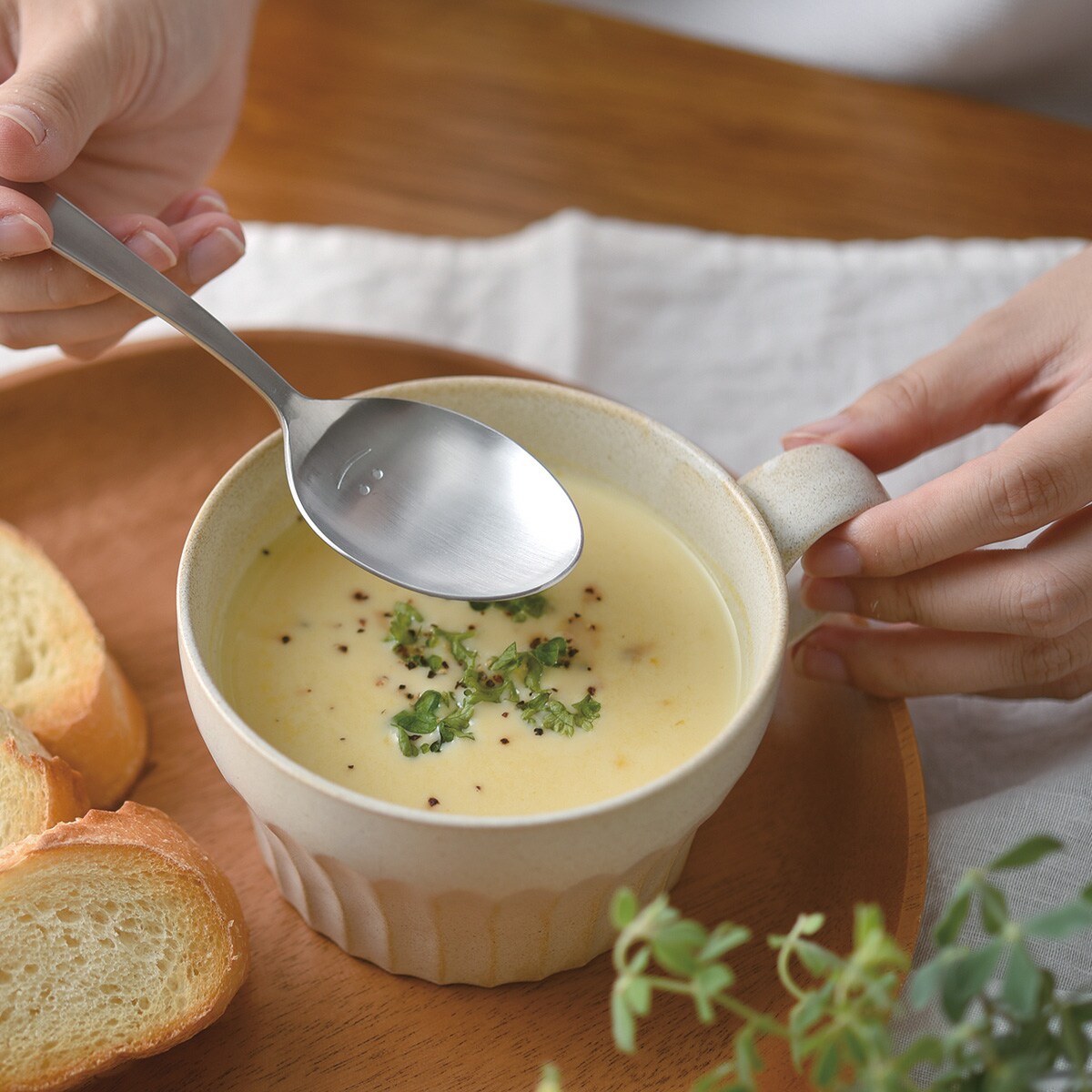 毎日暮らしに笑顔があふれる食事の時間を楽しくするカトラリー♪スプーンとフォークのツボ部分にさりげなく笑顔の刻印を施しています。程よい太さのハンドルは、全体の重量バランスも良く機能的で持ちやすいです。〇金属製品の産地燕三条製〇錆びにくいステンレス製で食洗機にも使用可能〇表面の艶消し加工により上品な光沢がありながらも、キズが目立ちにくい