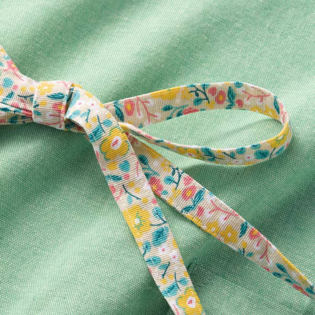 E(グリーン/小花) ふんわり軽やか、カラフルエプロン