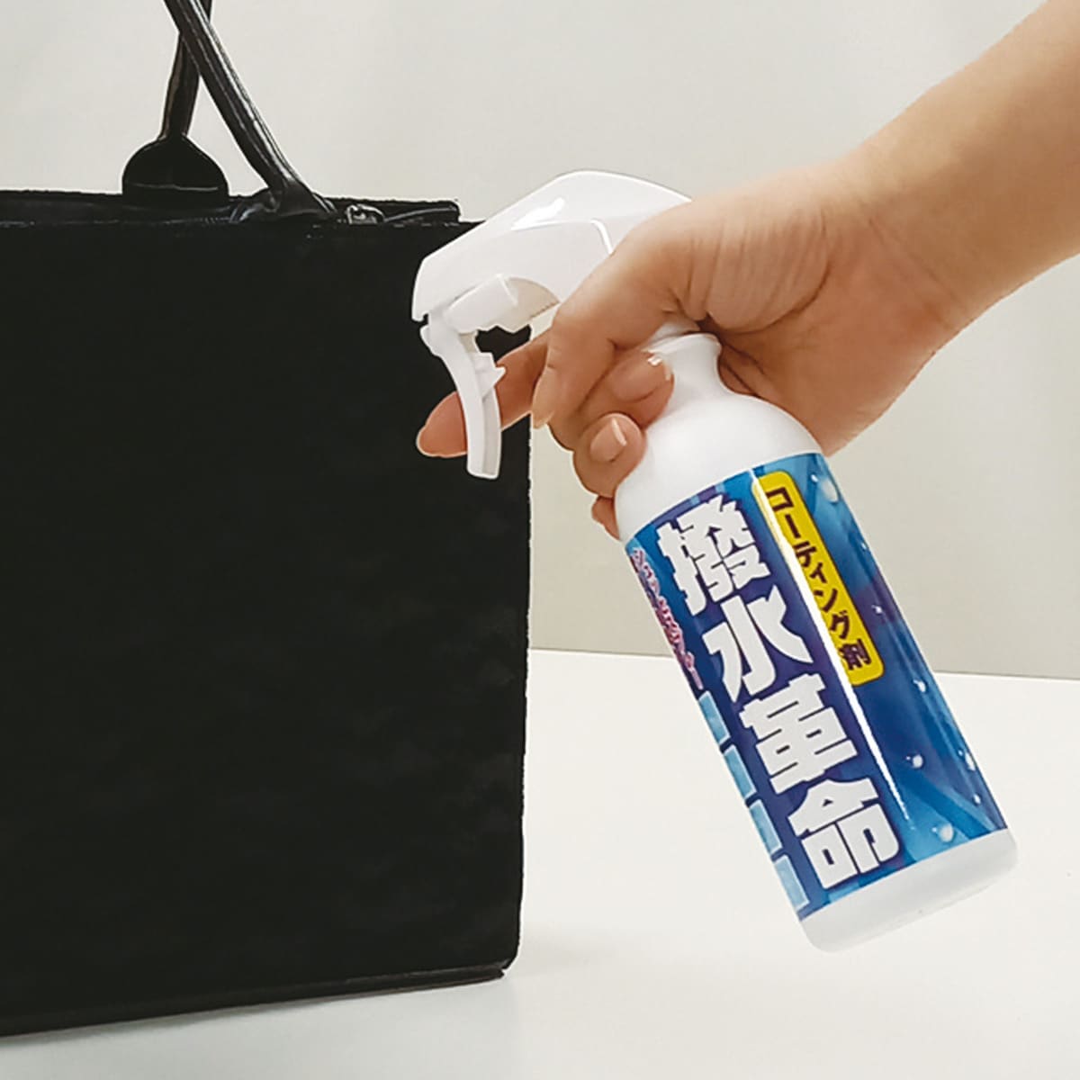水をはじいて汚れも付きにくく落ちやすい撥水&防水スプレー!スプレーして乾かすだけで、水をはじきながら汚れも付きにくく落ちやすくなるコーティング剤。雨の日の外出で服や靴、バッグが濡れて汚れてしまうお悩みにオススメ!スウェード、キャンバス、合成皮革、カバン・ソファ(布製品)など色々な素材に対応!