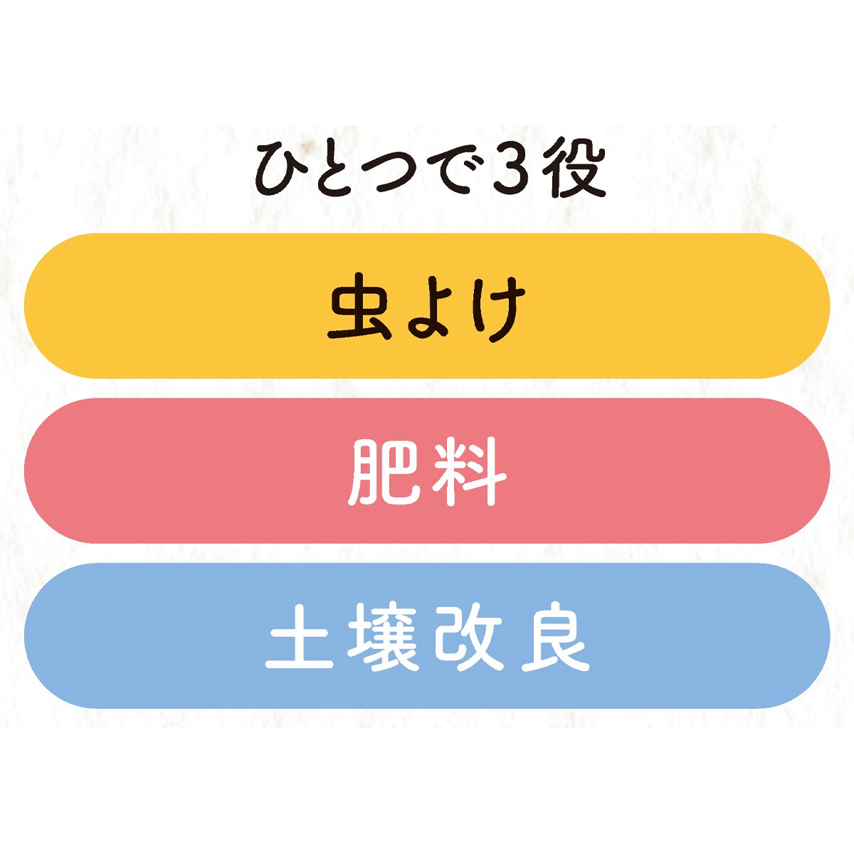 原料の「ニーム」は虫対策ができる肥料です。天然由来成分なので野菜や果樹栽培にも最適。害虫が嫌うといわれているだけでなく、土壌を改良し、植物の発育を促す効果もあり、ひとつで3役をこなします。