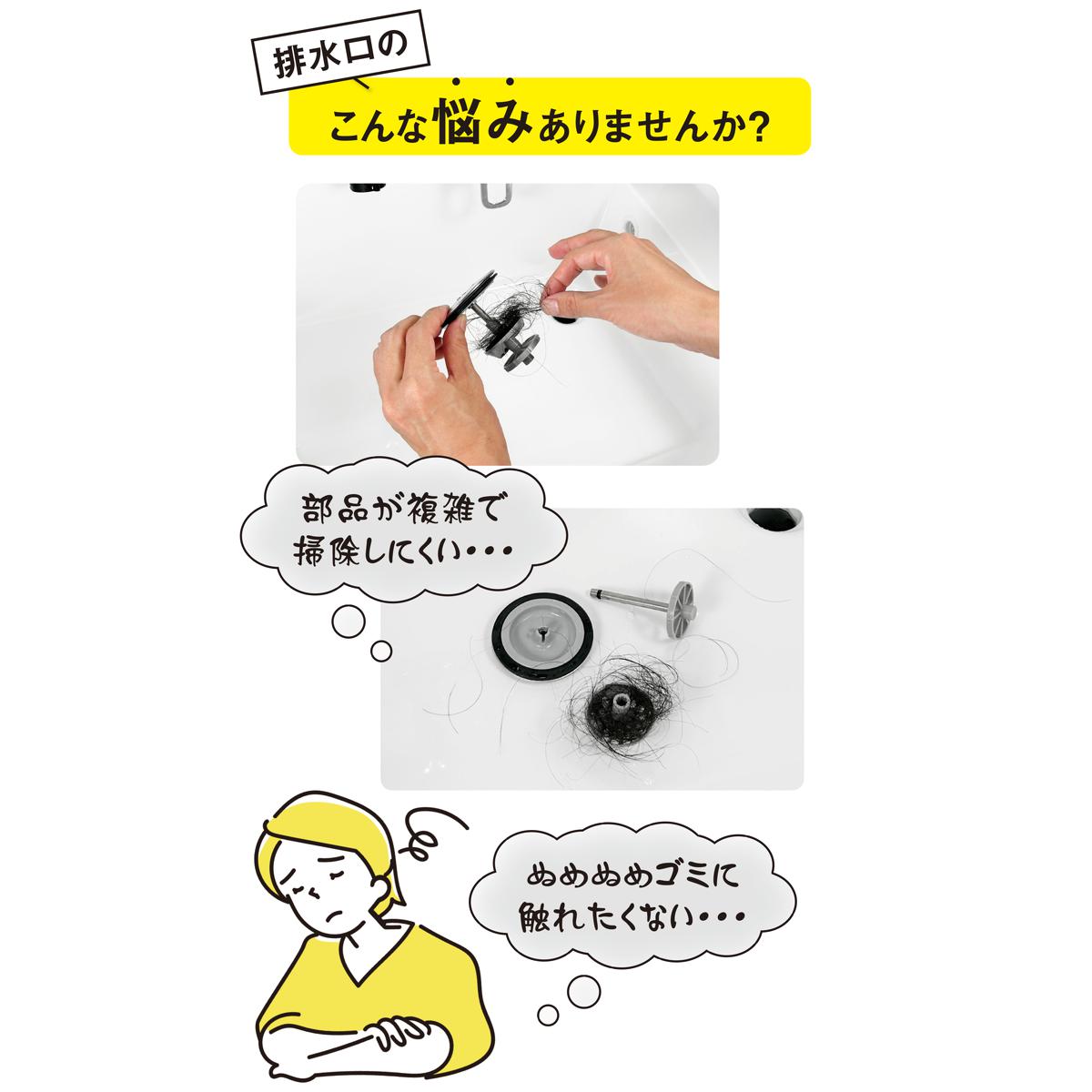 排水口のこんな悩みありませんか? 部品が複雑で掃除しにくい・・・ ぬめぬめゴミに触れたくない・・・