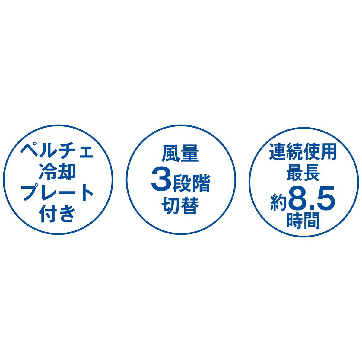 ペルチェ冷却プレート付き 風量3段階切替 連続使用最長約8.5時間
