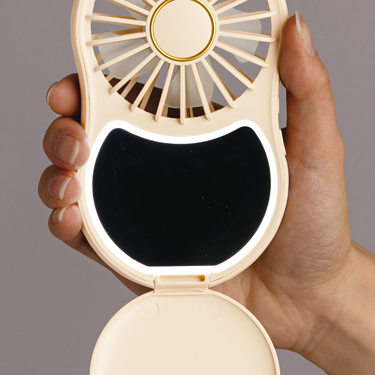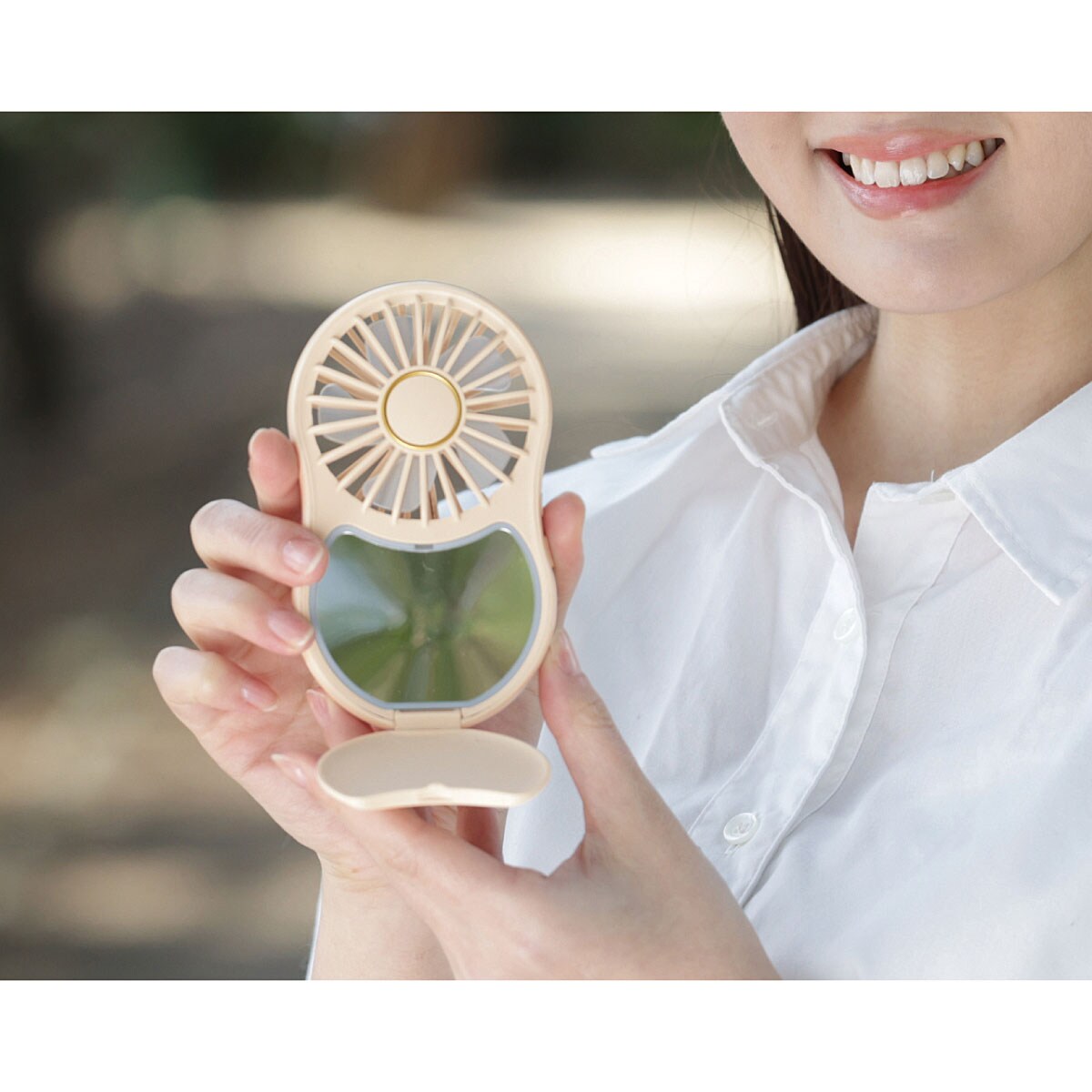 ハンディファンとLEDライト付きミラーが合体!身だしなみチェックも快適に