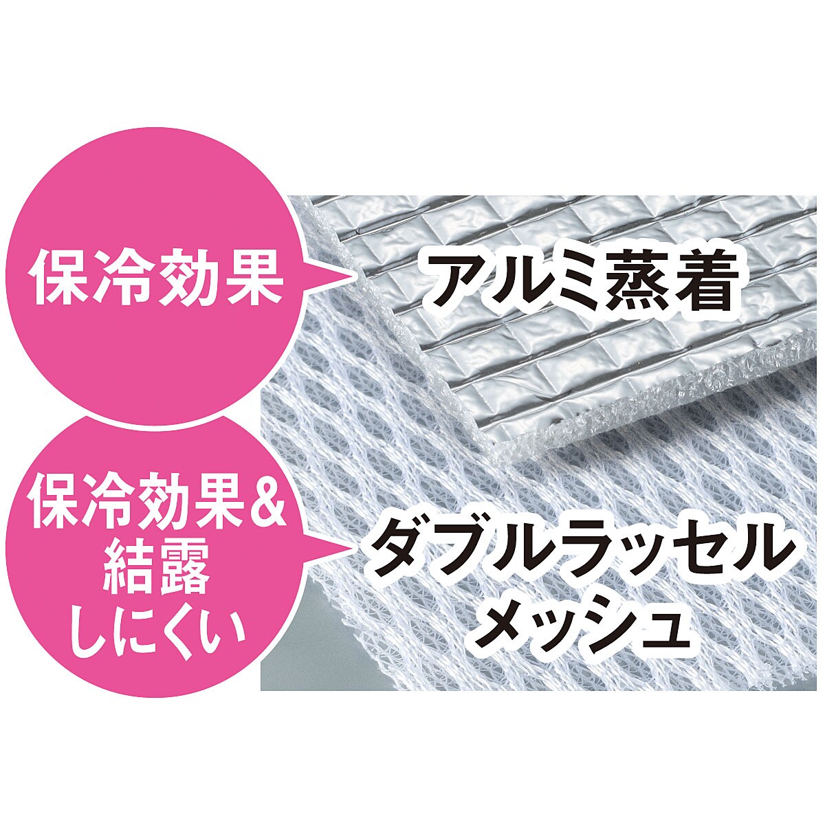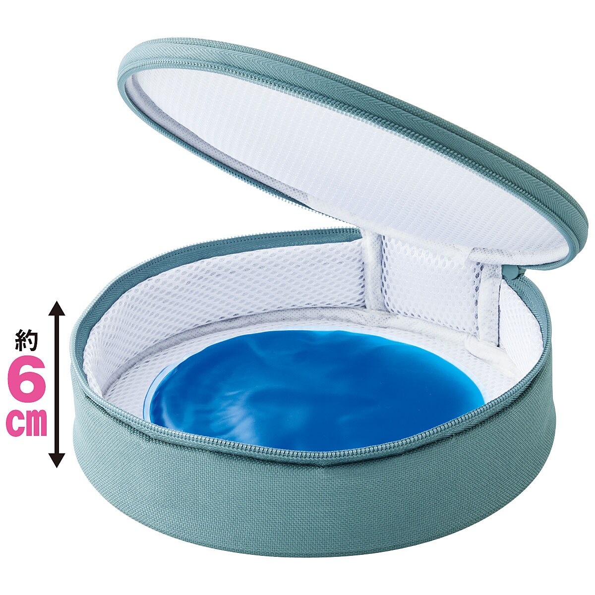 ■[本体]表生地:ポリエステル 内生地:アルミ蒸着フィルム[保冷剤]水、CMC-Na■サイズ(約cm)/直径20×厚さ6(ループ含まず)●持続時間/約8時間※凍らせた保冷剤を入れた本品に凍ったネックリングを入れ、ファスナーを閉じた状態で36℃の環境下で8時間、約28℃以下を持続●セット内容/本体、保冷剤●中国製