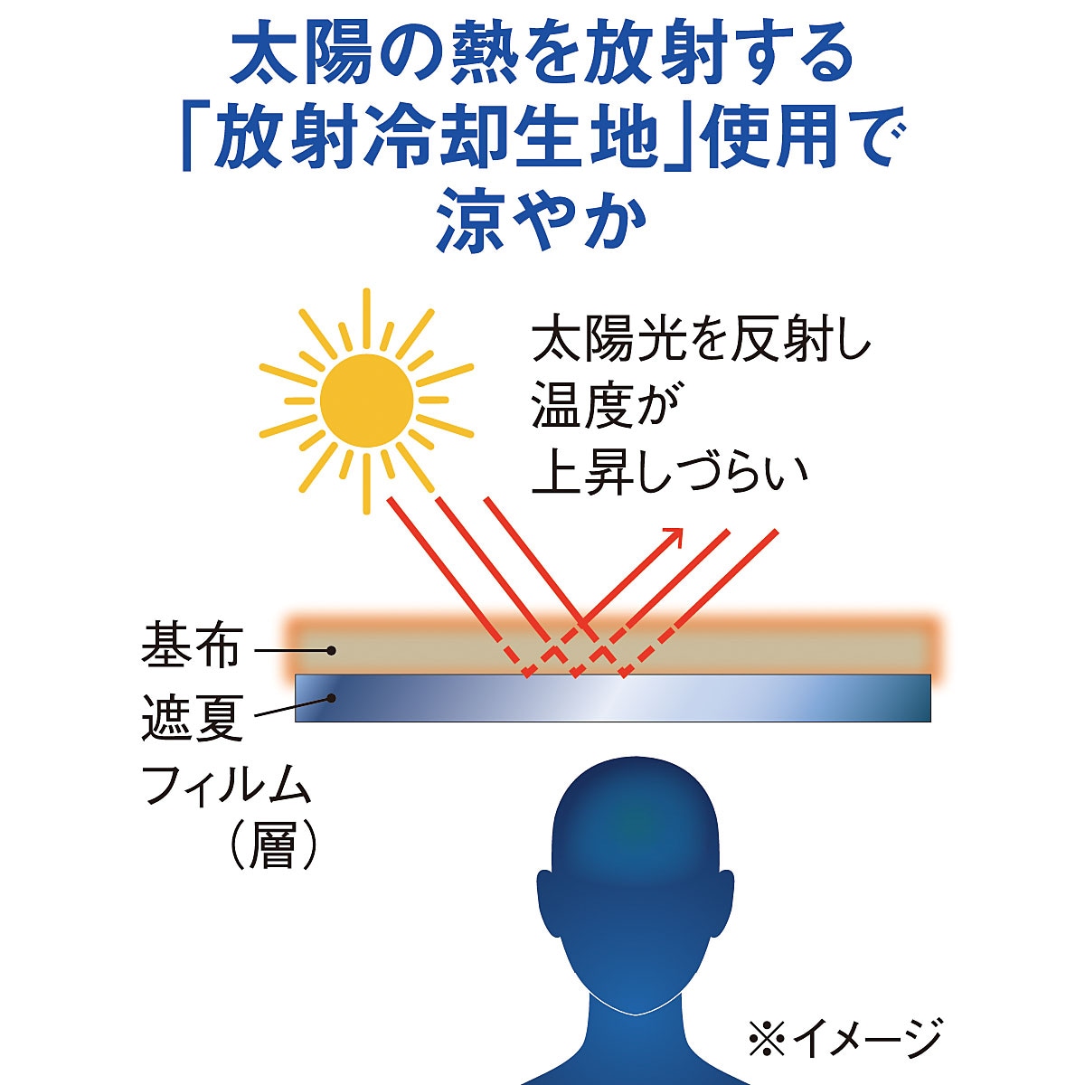 太陽の熱を放射する「放射冷却生地」使用で涼やか ※イメージ