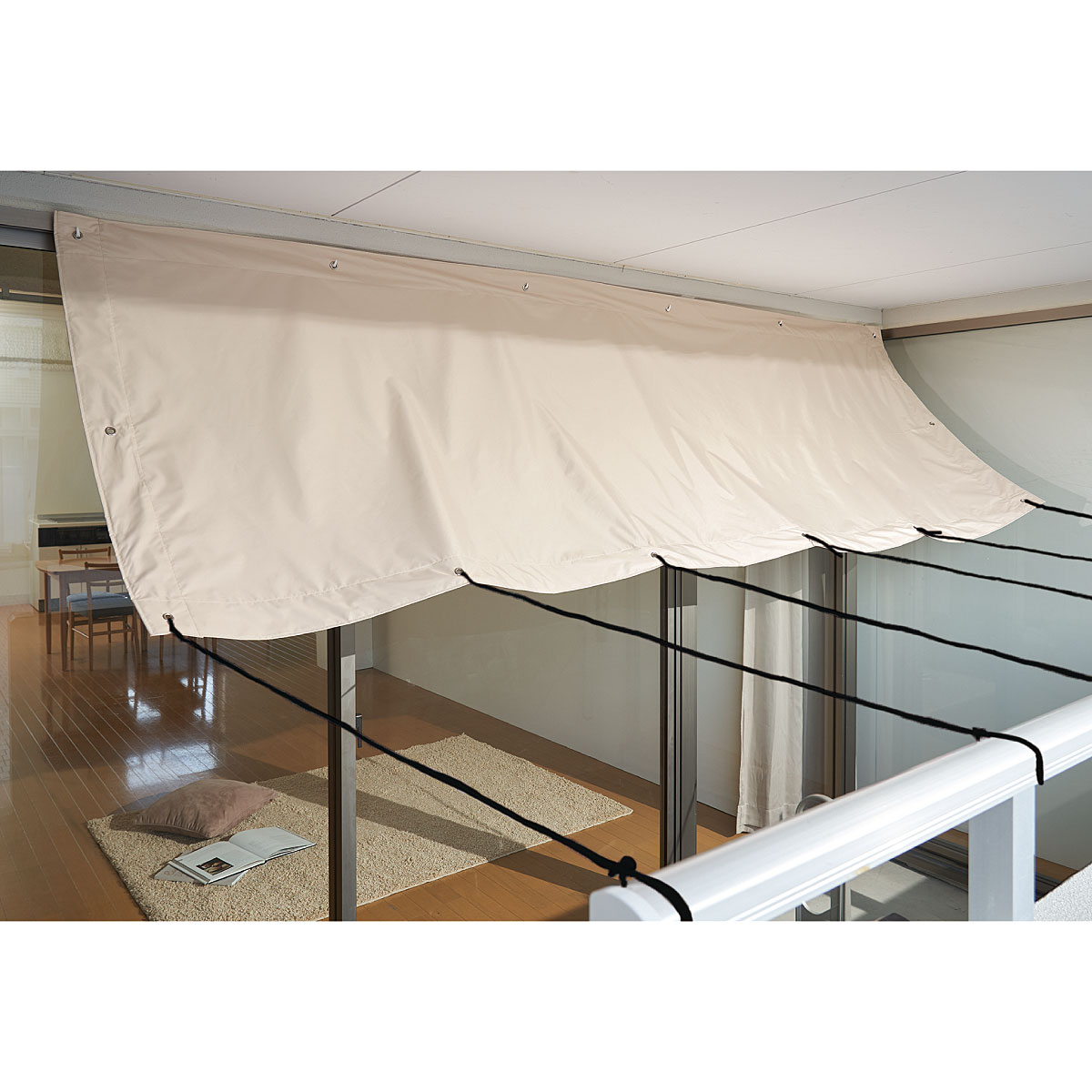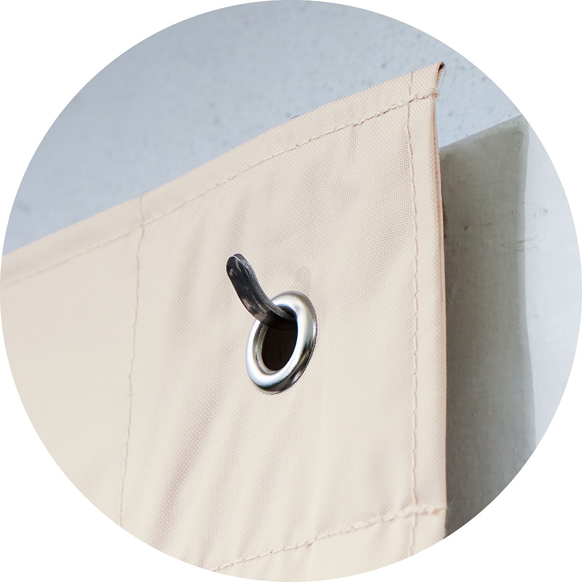 ハトメに付属のロープやお手持ちの留め具を通し固定