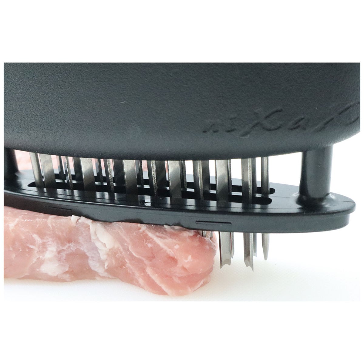 X型配列でスジを逃がさない! 刃を『X』型に配列し、あらゆる方向のスジを満遍なくカット!味が染みこむので、いつものお料理がもっと美味しく♪