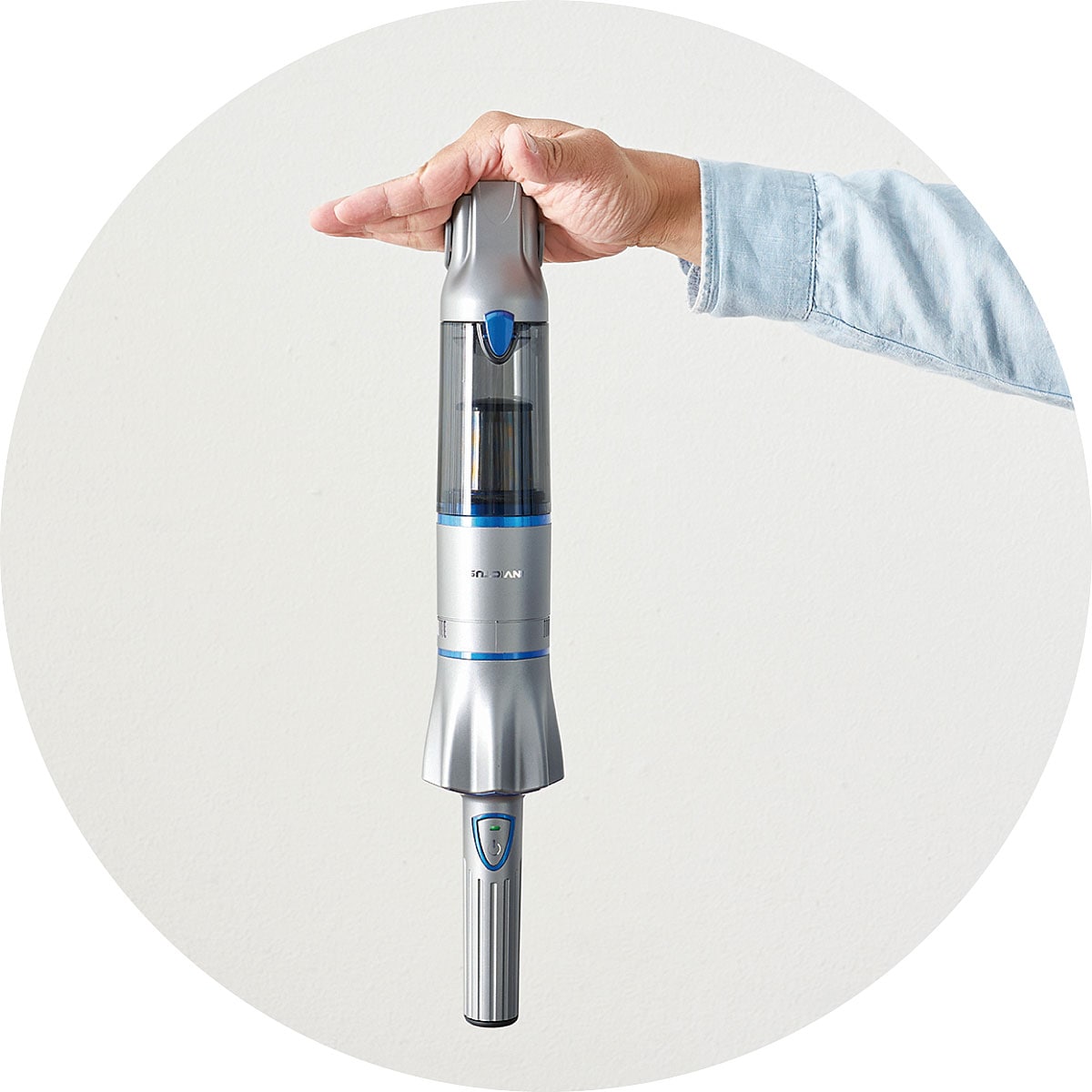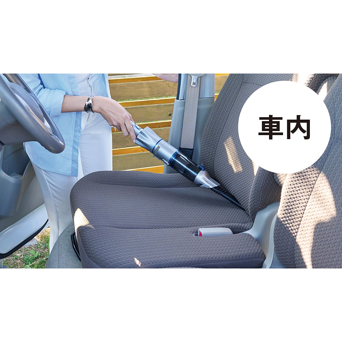 500mlのペットボトル約1本分の軽さなのに、パワフルな吸引力でしっかりゴミを吸い取ります。充電して使うコードレス設計だから屋外や車のお掃除にも大活躍。4種のアタッチメントで色々な場所のお掃除ができます。