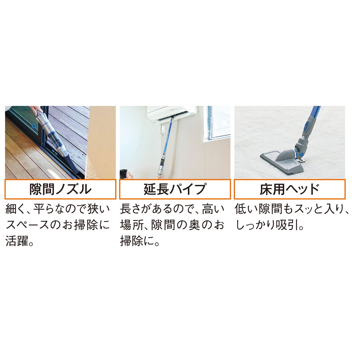 4種のアタッチメントで色んな場所のお掃除ができる!