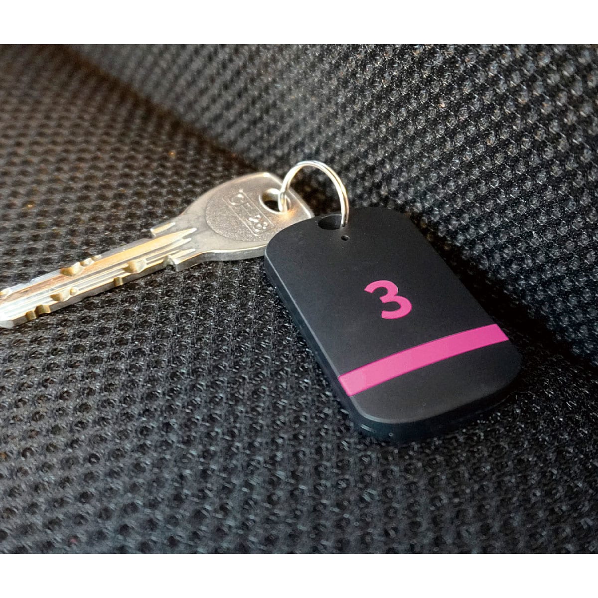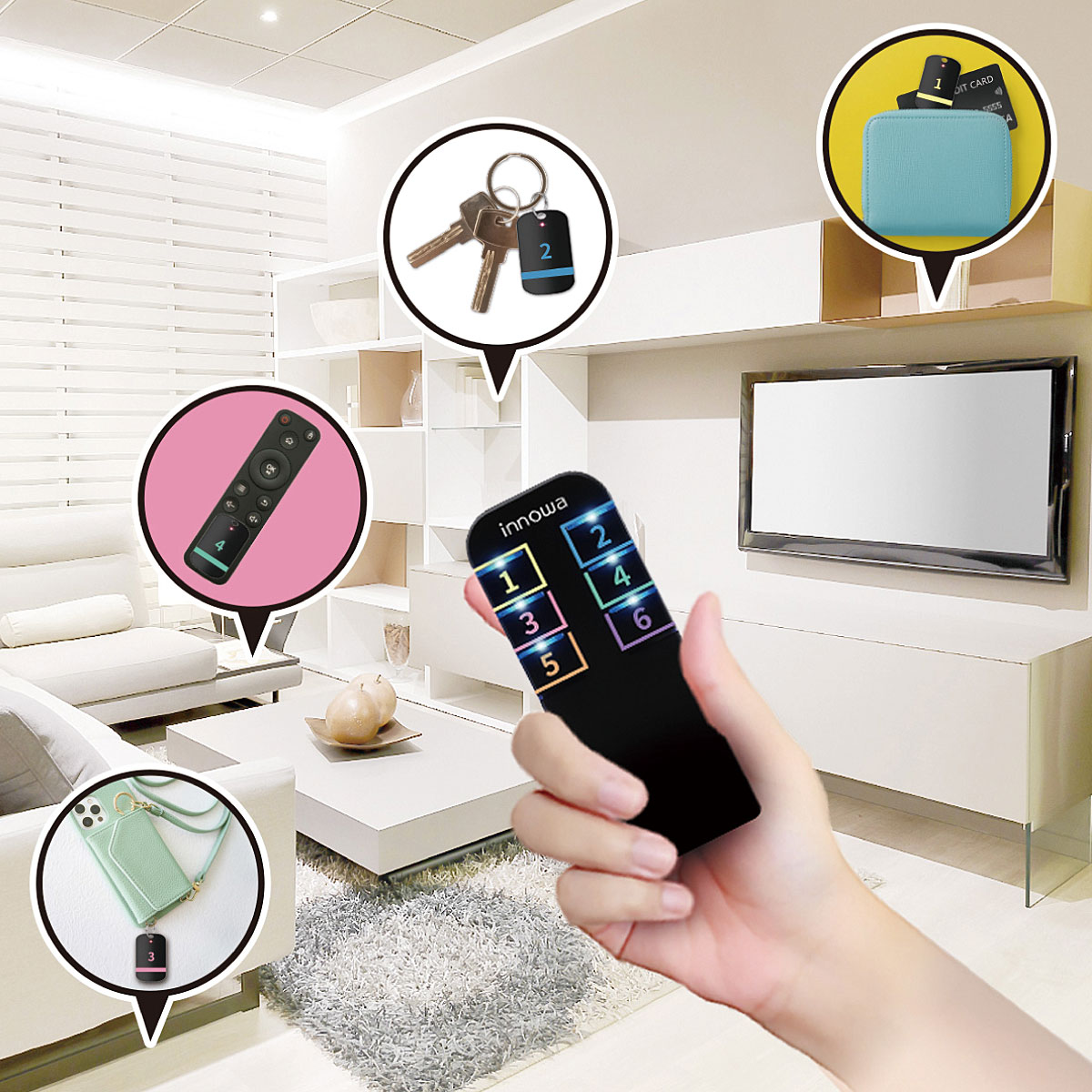 鍵や財布などに番号タグを取り付け、リモコンを押すだけで音と光でお知らせ。