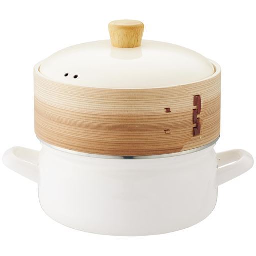 せいろによって、蒸気で加熱することにより、食材本来の味が際立ちます。素材の天然木と竹が調理中の余分な水気を適度に吸収し、蒸気が食材をやさしく包み込むように、ふんわりと蒸し上げます。肉まんやシュウマイなどの冷凍食品は蒸気のおかげでふっくらつやつやの仕上がりに。いつもと一味違う冷凍食品を楽しめます。食材を詰めて鍋にかけたら、あとは手間をかけずに、ヘルシーな蒸し料理の完成です。ホーロー鍋は煮る・揚げるといったお料理にも活用していただけます。
