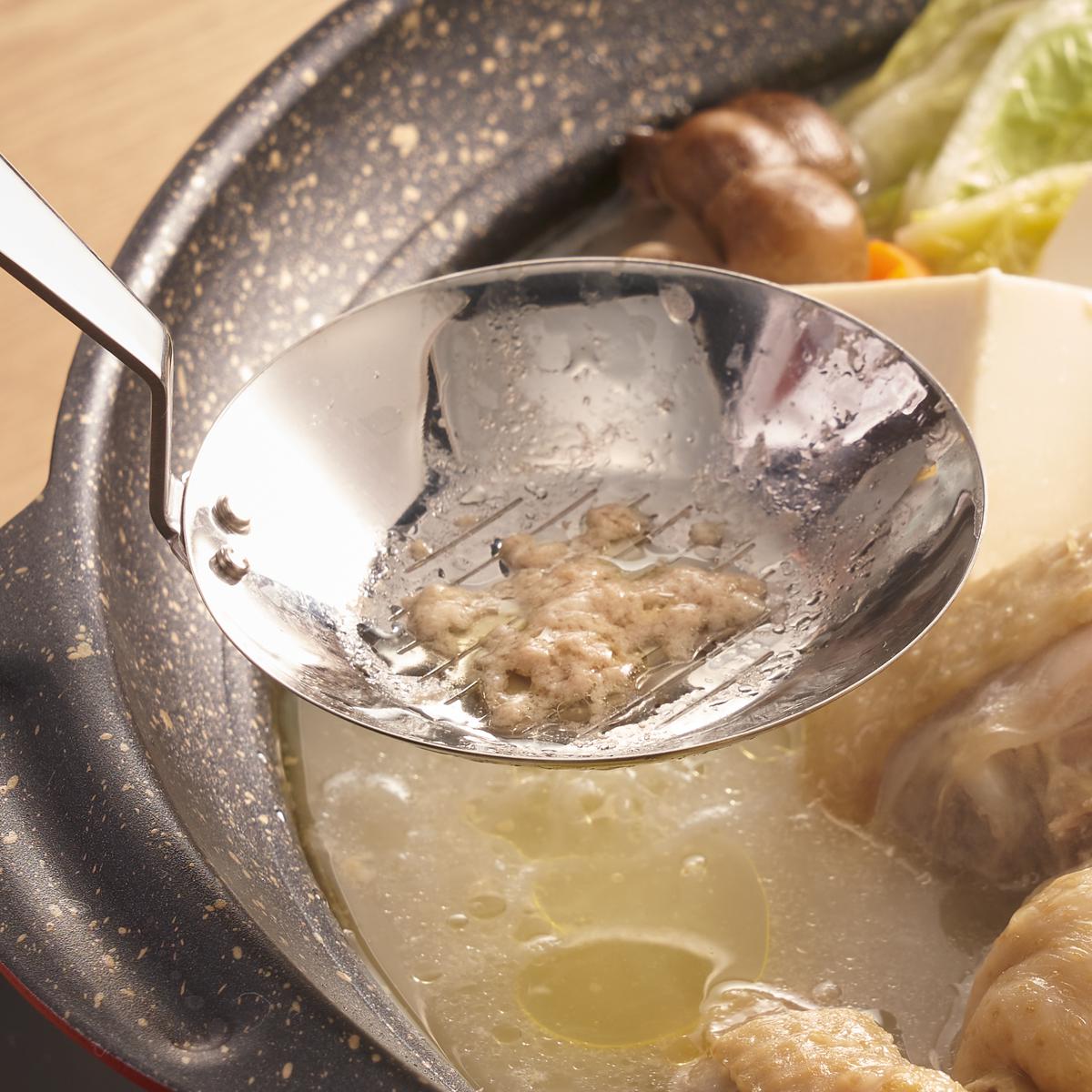 スープを減らさない!アクだけをきれいに取り除くあくとりさん!