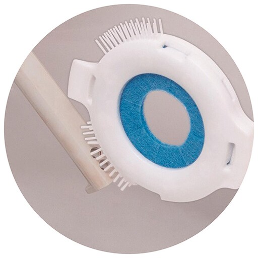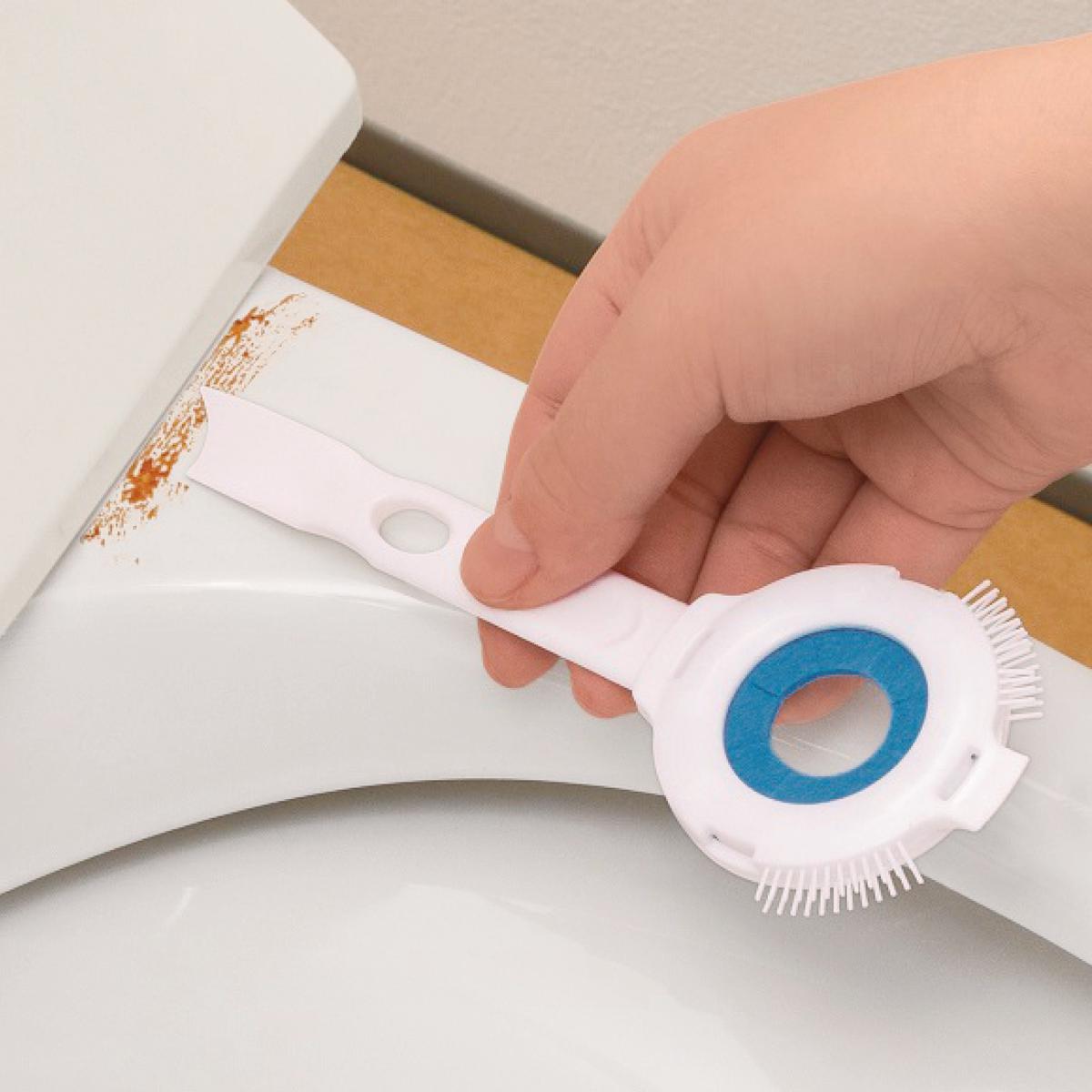 トイレノズルに通すだけでノズル表裏が一気に掃除できる円形クリーナー!!クエン酸効果で水アカ汚れもスッキリ落とします。使い切りタイプで衛生的!!ノズルだけでなく、便器と床のすき間や溝などの汚れをかき出すヘラ付き。