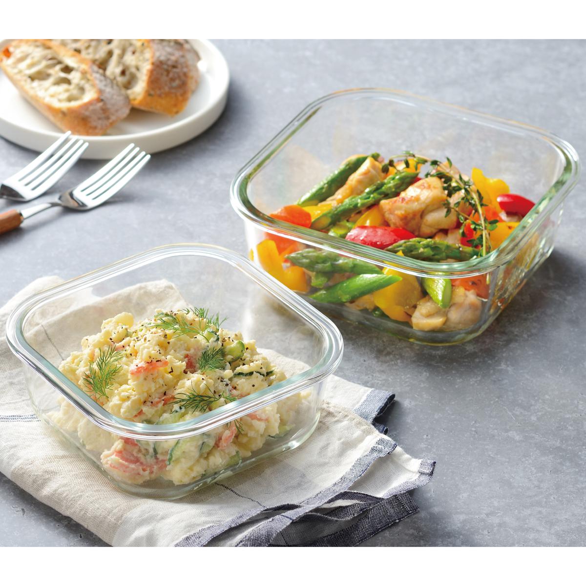 調理から食卓、保存までこれ1つ! シンプルで使いやすい耐熱ガラス保存容器です。下準備や作りおきにもおすすめ。忙しい毎日の調理を時短に!