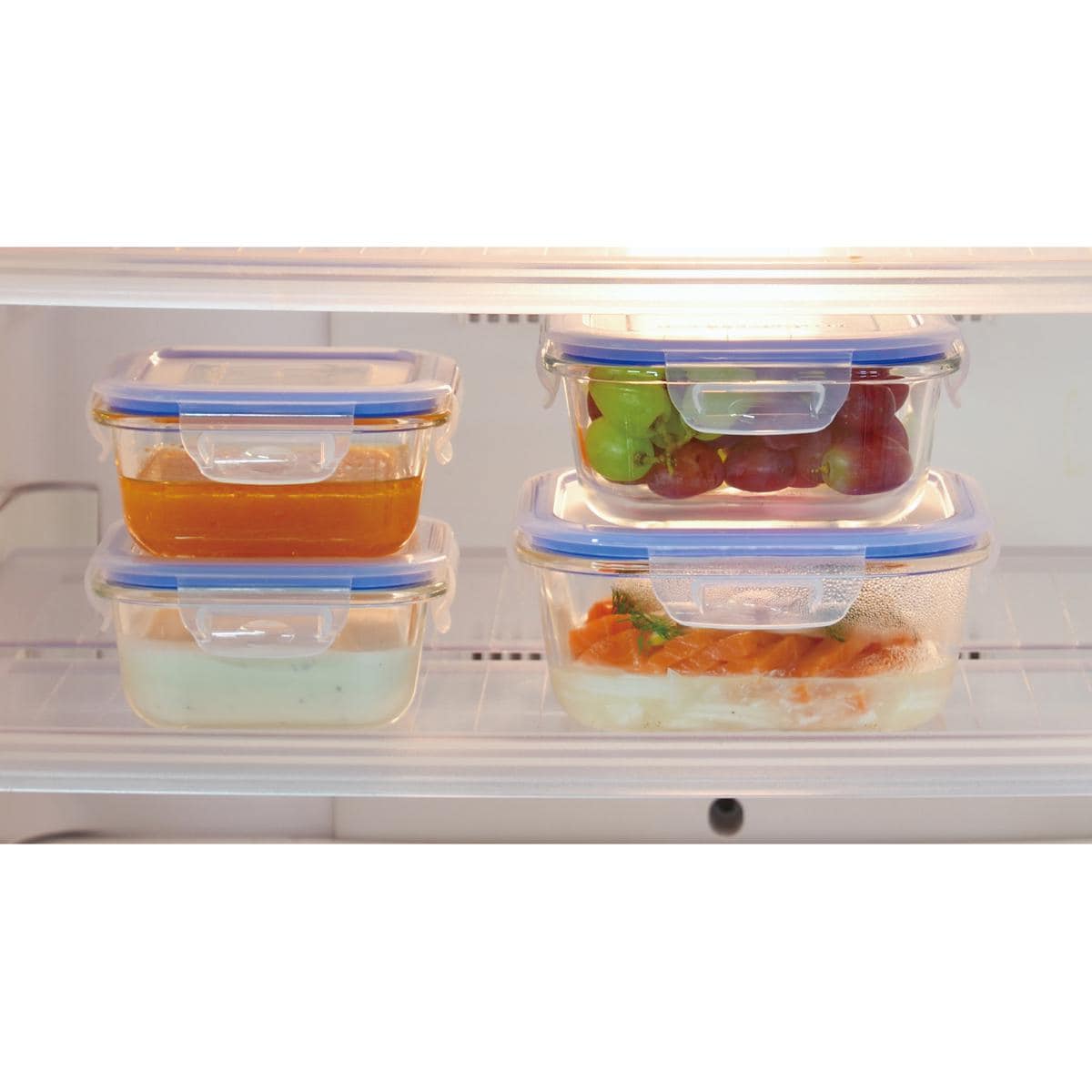 冷蔵庫の中に入っていても中身が分かりやすい。ガラス製なので色やにおいがつきにくく、汚れも落としやすいので、お手入れもラクラクです。