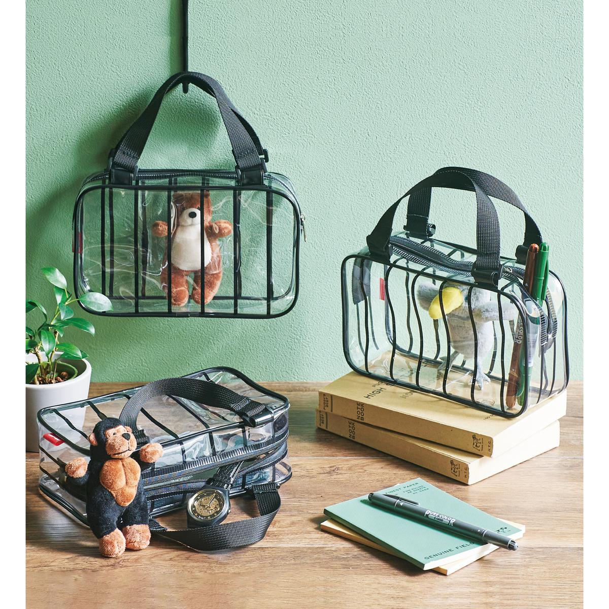 動物園をイメージしたケージモチーフのビニールポーチ♪文具や小物類、推し活グッズを入れてお使いいただけます!透明なので中身が見えて◎。ユニークな形は映えること間違いなし。キャラクターはポーチ内の透明バンドで固定、取り外すことも可能です。ボールチェーン付きなどの単体でも使えます。普段使いはもちろん、動物好きさんへのプチギフトとしても喜ばれます。