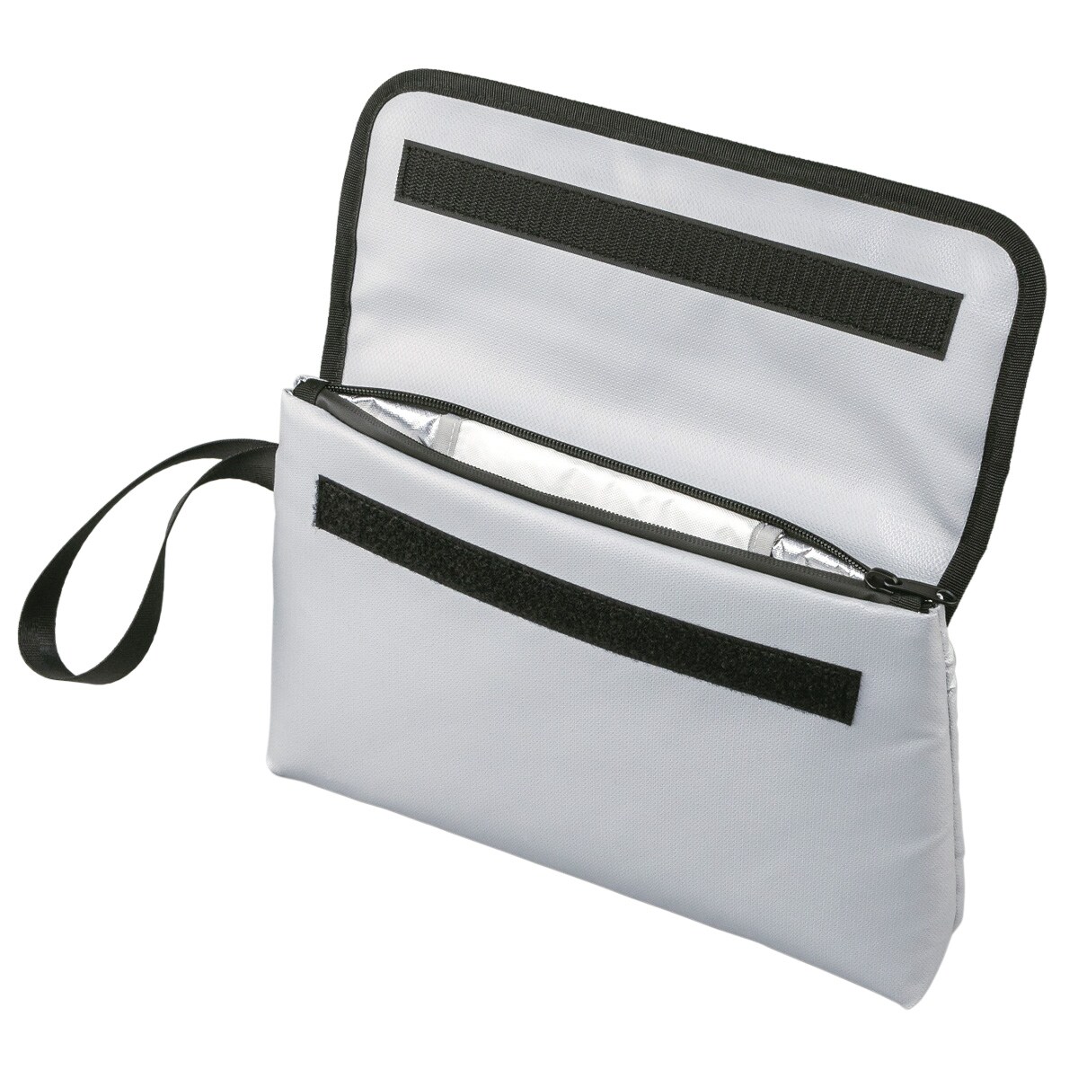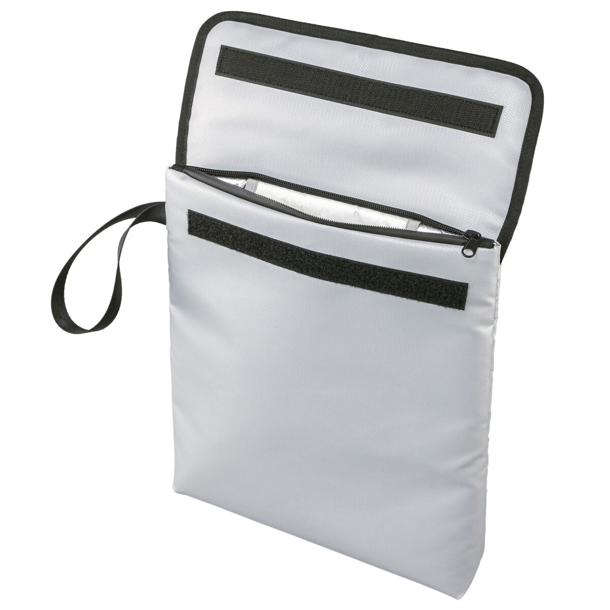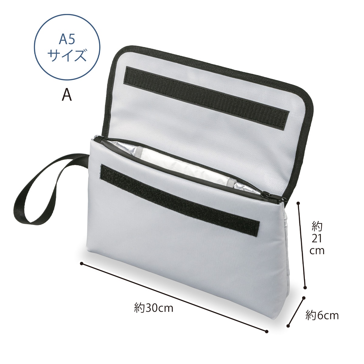A4のクリアファイルがすっぽり入る! マチ付きでたっぷり収納できる防炎保管袋です。火を近づけても燃えにくい素材を使用。内ポケット付きなので印鑑や通帳などを整理して収納できます。特殊ファスナーでしっかり保護し、非常時に持ち出しやすいストラップ付きで持ち運びにも便利です。