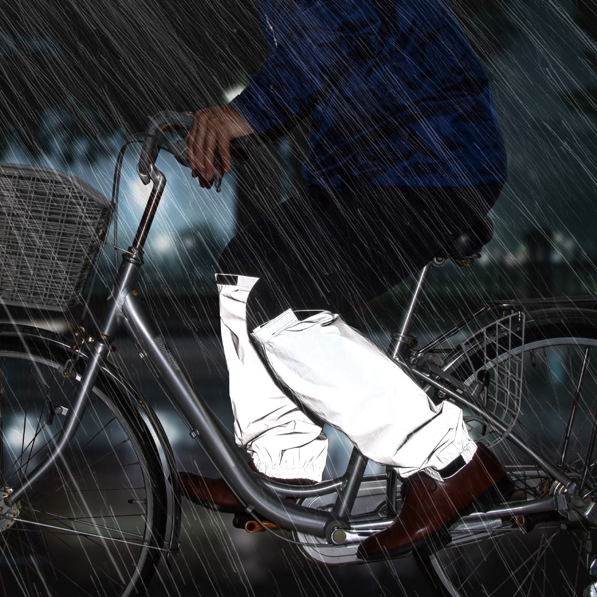 夜道で光るレッグ用レインカバー!ライバーに存在を知らせて夜間の事故防止に。