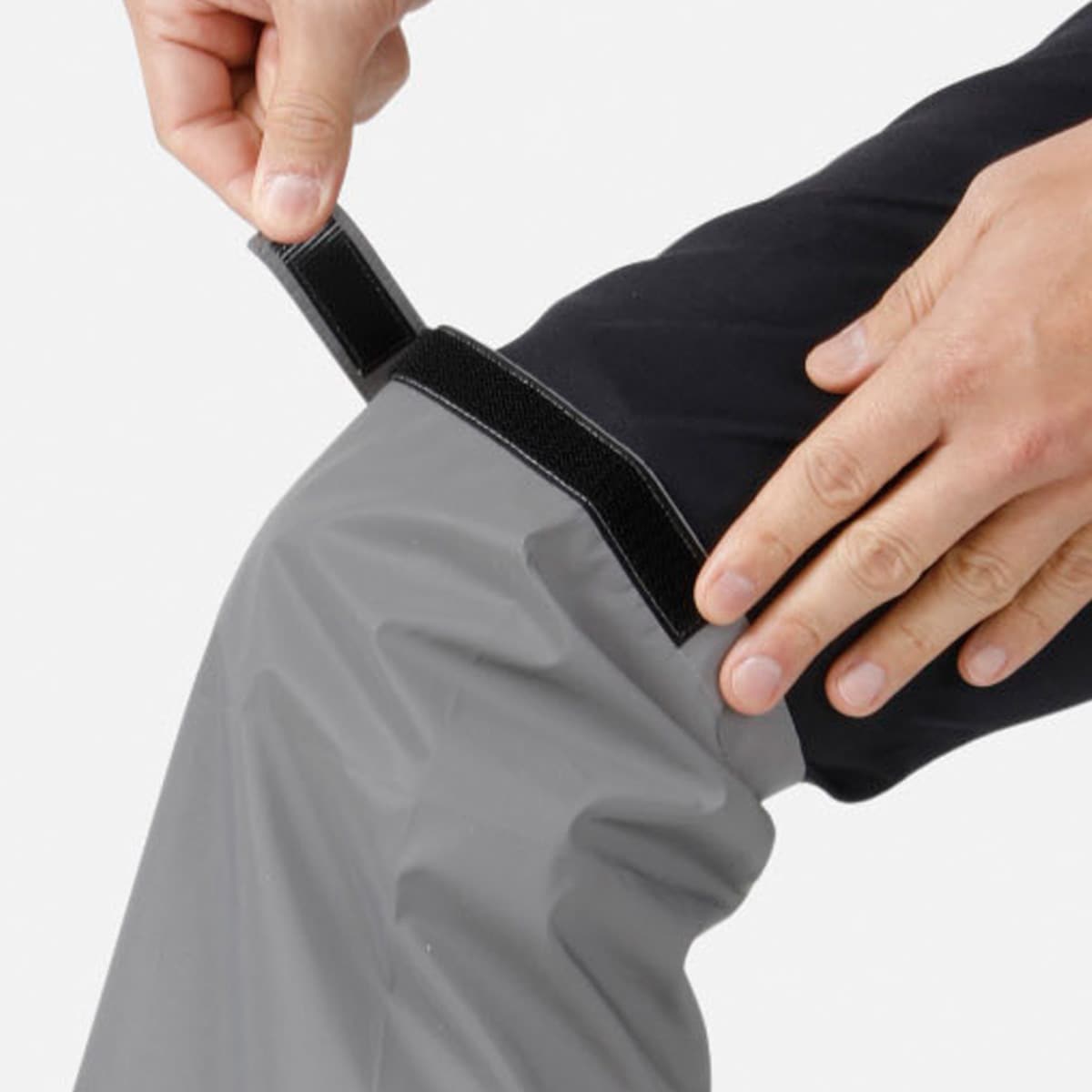 レッグカバーは履いて面ファスナーで留めるだけ。上下どちらからも履けます。