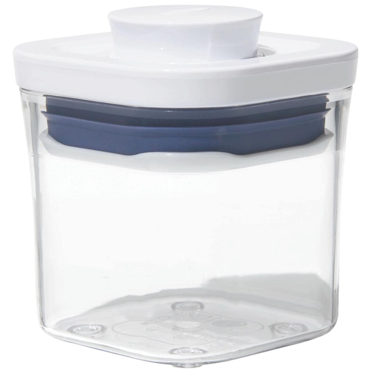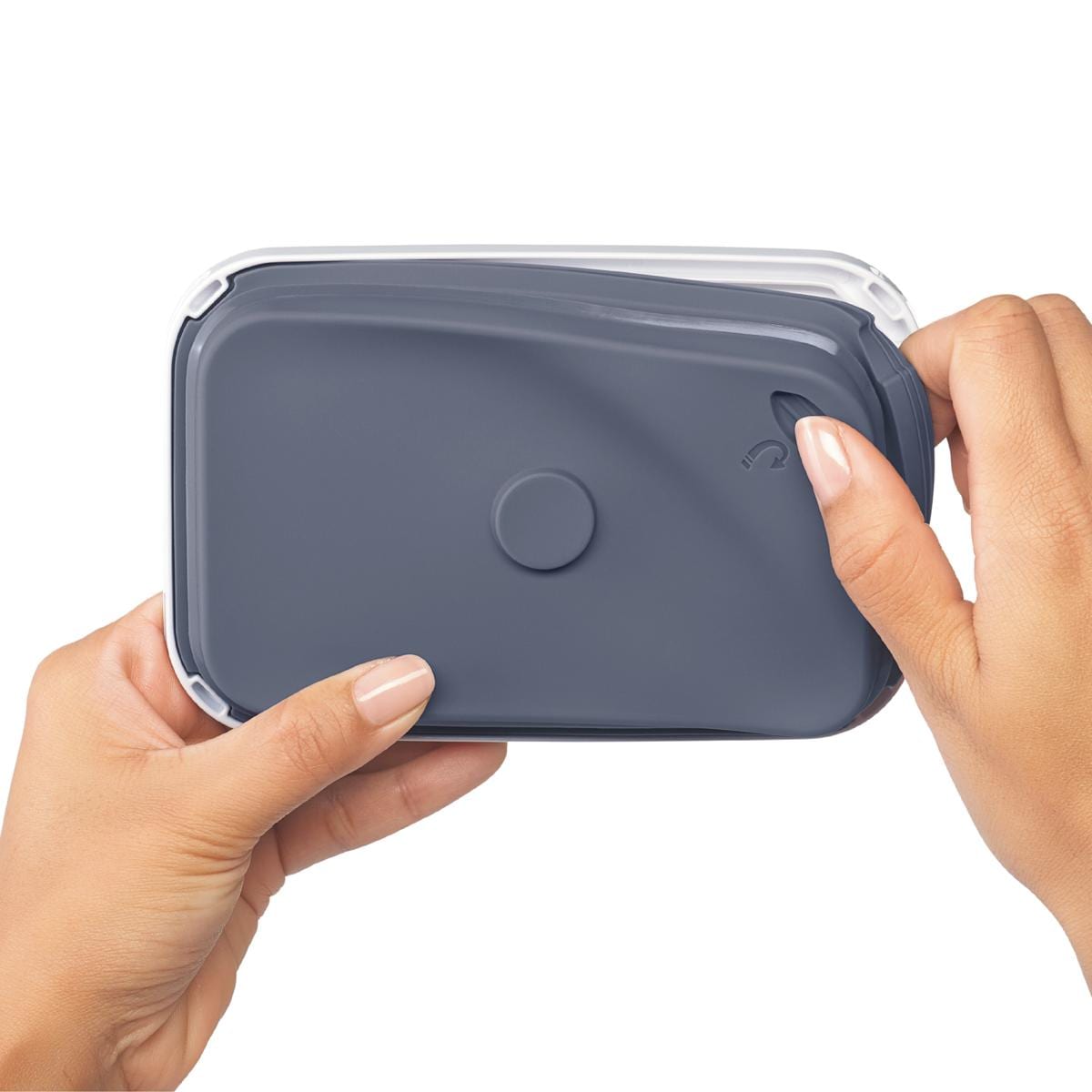 (左から)A(ミニスクエア/ミニ)、E(スモールスクエア/トール)、D(スモールスクエア/ショート)、B(レクタングル/ショート)、C(レクタングル/ミディアム) ポンッと押すだけ!片手で簡単密閉!