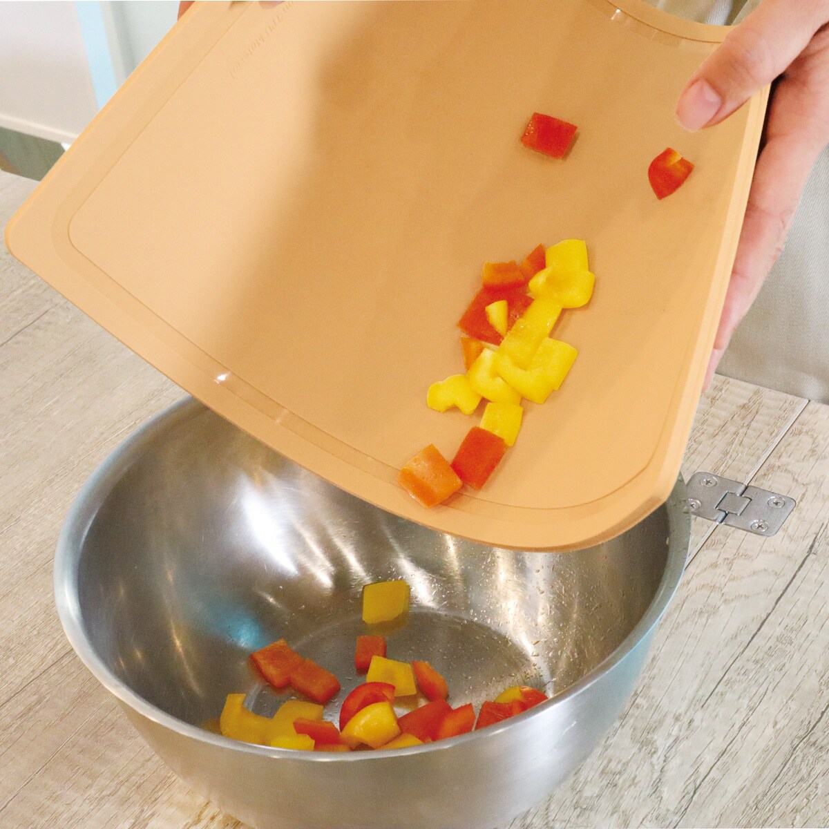柔らかい素材で曲げられるので、切った食材をお鍋やボウルに移しやすい!