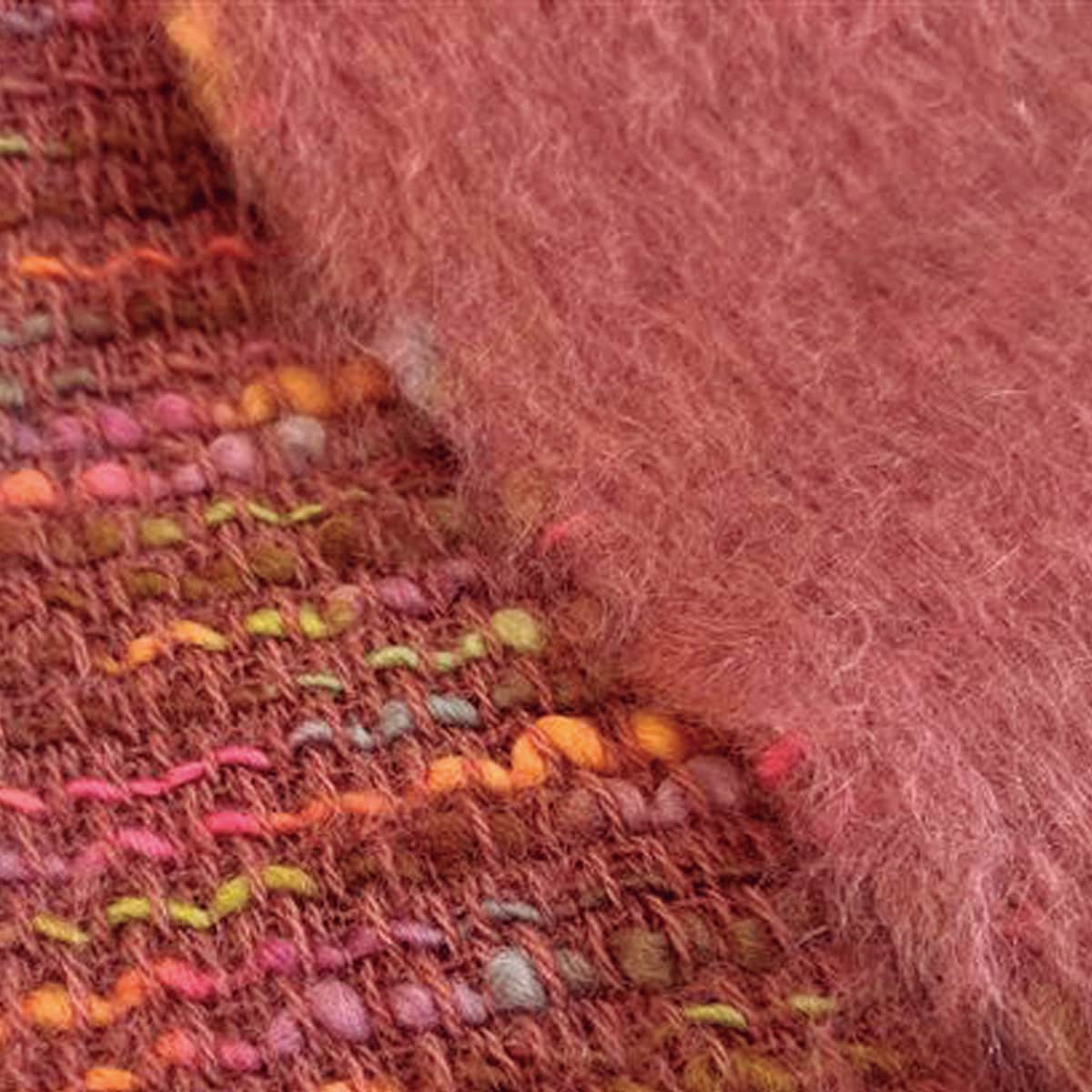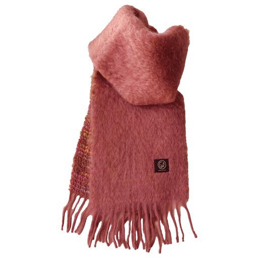 スペインのマンタスエスカライのマフラーは、ふわふわのモヘヤとウールをブレンド。しっとりとした無地の表とツイードのような裏。どちらの面を出すかで表情も変化。ニュアンスの違いを楽しめ、鮮やかな色味も魅力。長めのフリンジがアクセントに。