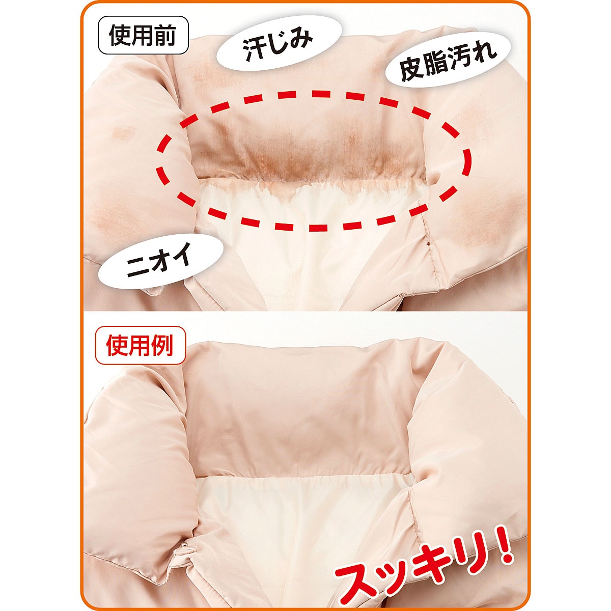水洗い不要!スプレーして拭くだけでダウンのエリやそでを簡単洗浄!