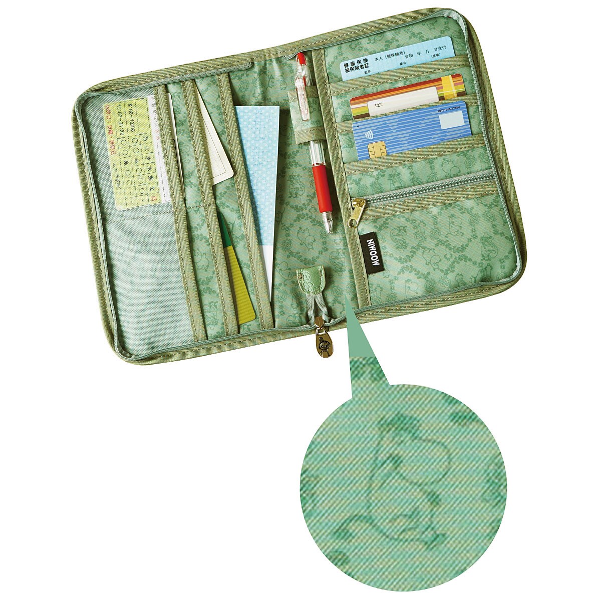 通院に必要なアイテムがスッキリ収納できるポーチ。内側も可愛い絵柄仕様!