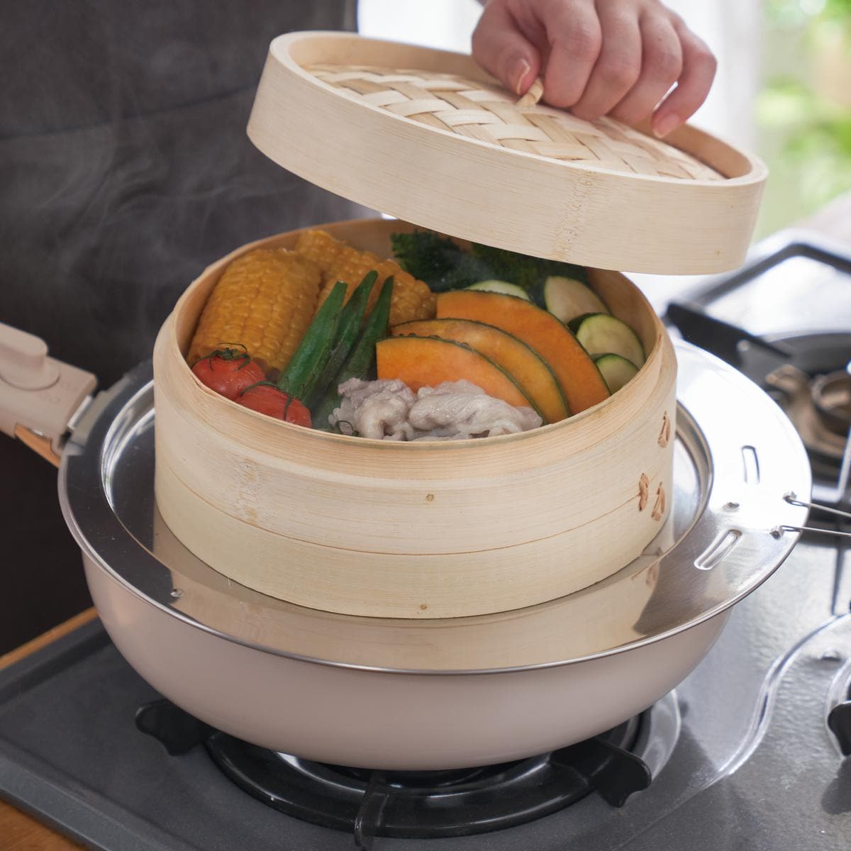 冷蔵庫のものを、ぽんぽん入れて蒸すだけでごちそうに! 調湿性が高く、お料理が映える「竹製」のせいろです。