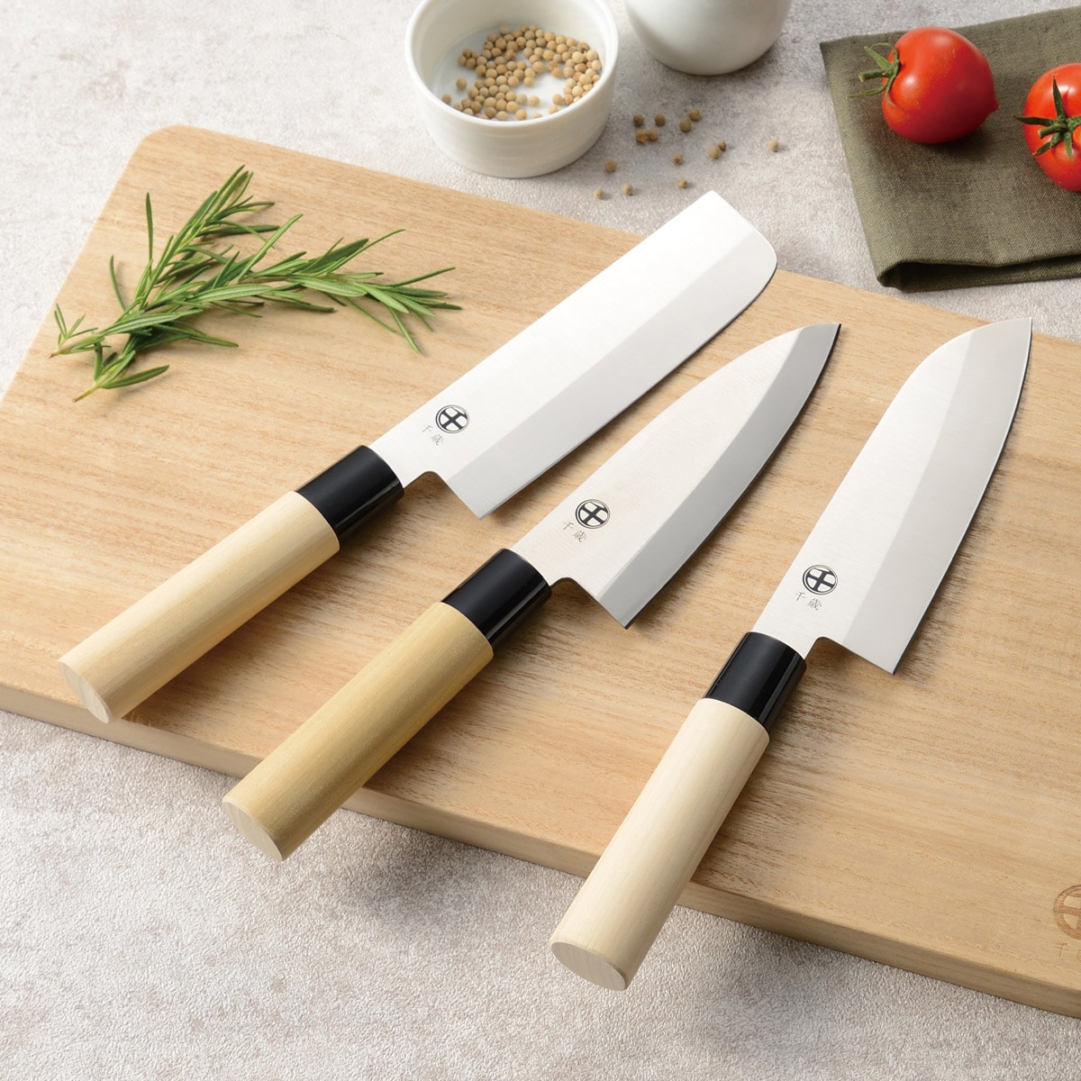 サビにくく切れ味の良いモリブデンバナジウム綱。手になじみ、使い込むほどに味わいが増す天然木ハンドル。お手入れをすれば何年にもわたり使い続けられます。●万能包丁肉・野菜なんでも切れる!家庭での使いやすさに注目した日本生まれの包丁。料理の下ごしらえに必須です。●菜切包丁野菜を切るのに最適!刃が直線的なので野菜や果物のような繊細な食材を潰すことなくきれいに切れます。●出刃包丁魚を捌くのに便利!峰が厚く、刃先が薄く尖っているので魚の骨に身が残りにくいです。