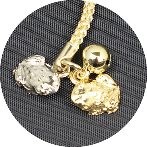 カエルは雨や豊作をもたらし、「無事カエル」「福がカエル」「お金がカエル」とされる、縁起のよい守り神!(グリーン)