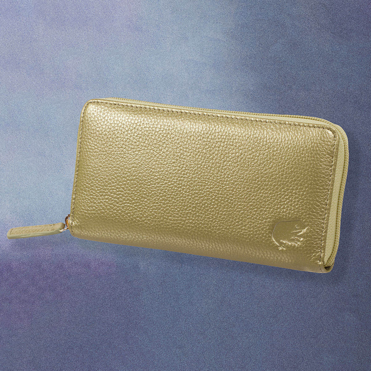 財運飛躍の象徴!「カエル」の牛革型押し財布(ゴールド)