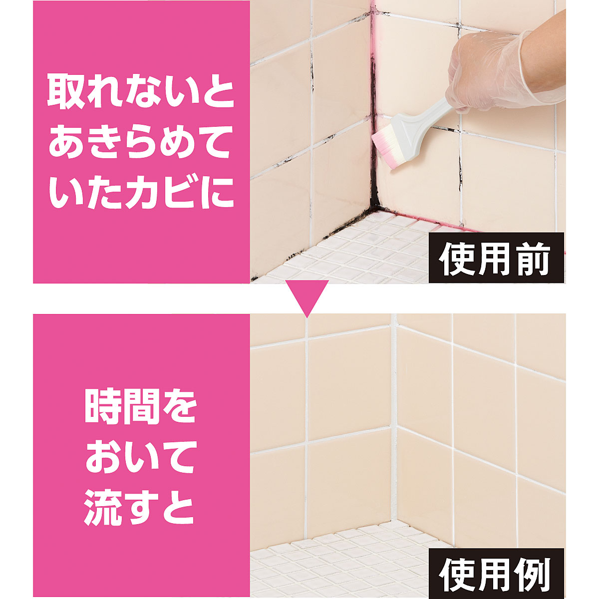 なかなか取れにくいお風呂場にできてしまったカビを、強力洗浄力でなかったことに!防カビ成分でカビを予防してくれるので、その後のお掃除もらくになります。刷毛タイプでピンポイントにしっかりと塗れるので、細かいカビまで取れるのがポイントです。