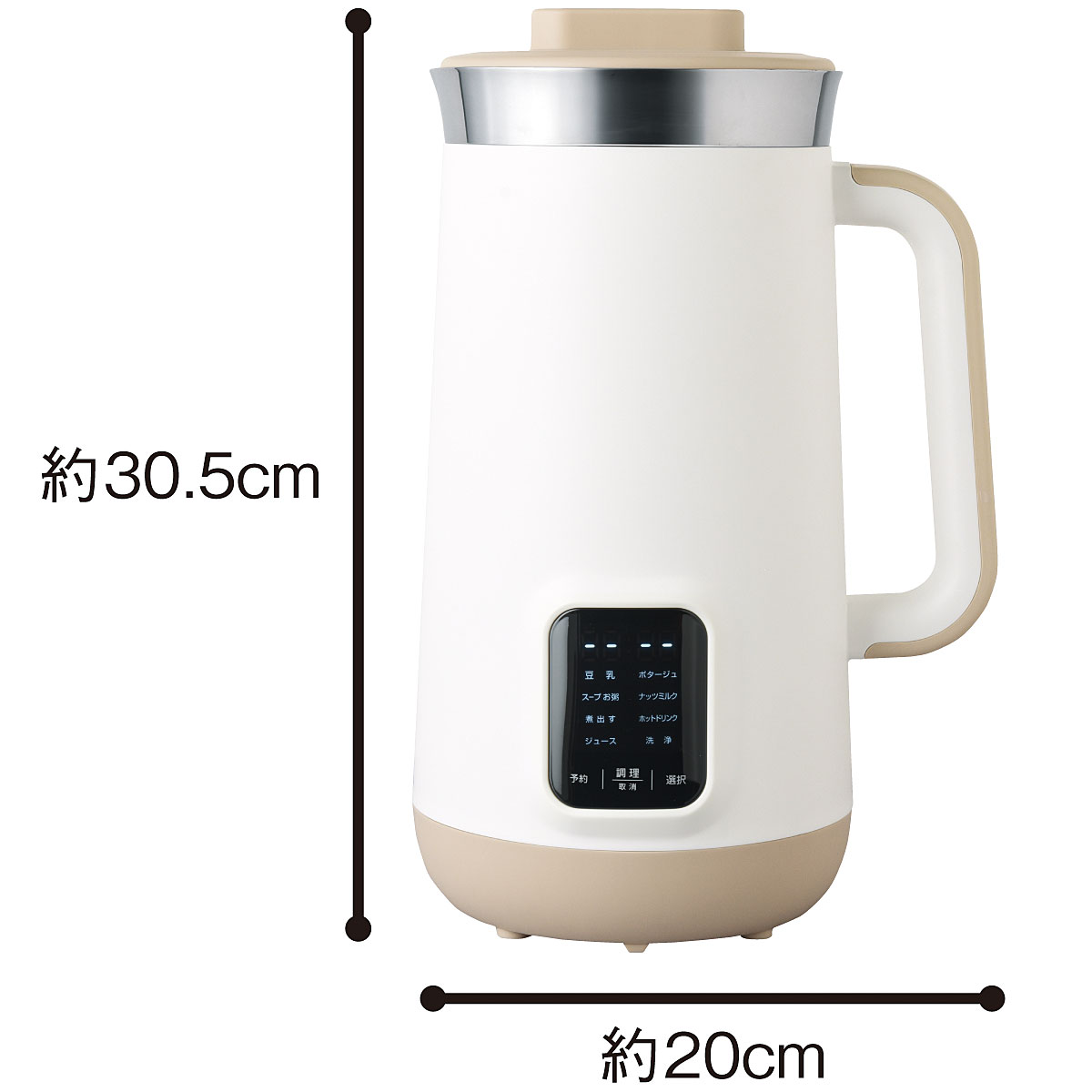 氷も砕けるので、スムージーなどの冷たいメニューもこれ1台で作れます。高温自動洗浄モードでお手入れラクラク。本体内側は衛生的なステンレス製なのでニオイ移りの心配も少ないです。■ステンレス鋼、ポリプロピレン、シリコーンゴムほか■サイズ(約cm)/20×15.5×高さ30.5■重量/約1.6kg(本体のみ)■容量/約1.2L(最大)■電源/AC100V■定格消費電力/950W(攪拌150W・加熱800W)■電源コード長さ/約1m●付属品/お手入れブラシ、計量カップ、レシピブック、コード●中国製【保証書付1年間】(本体のみ)【交換・返品不可】