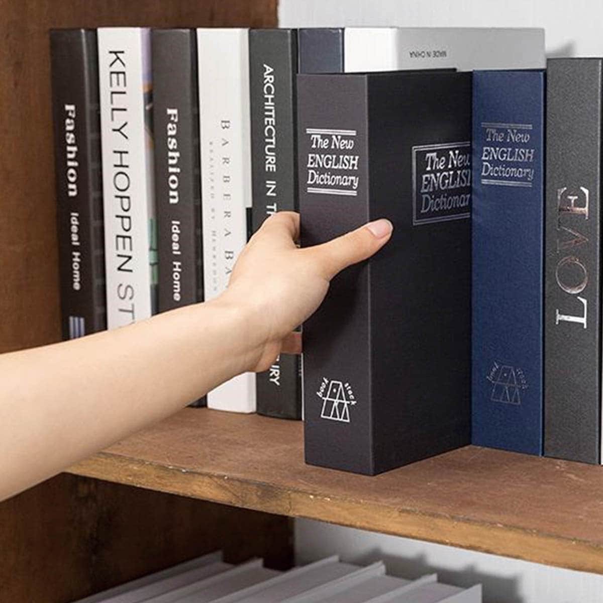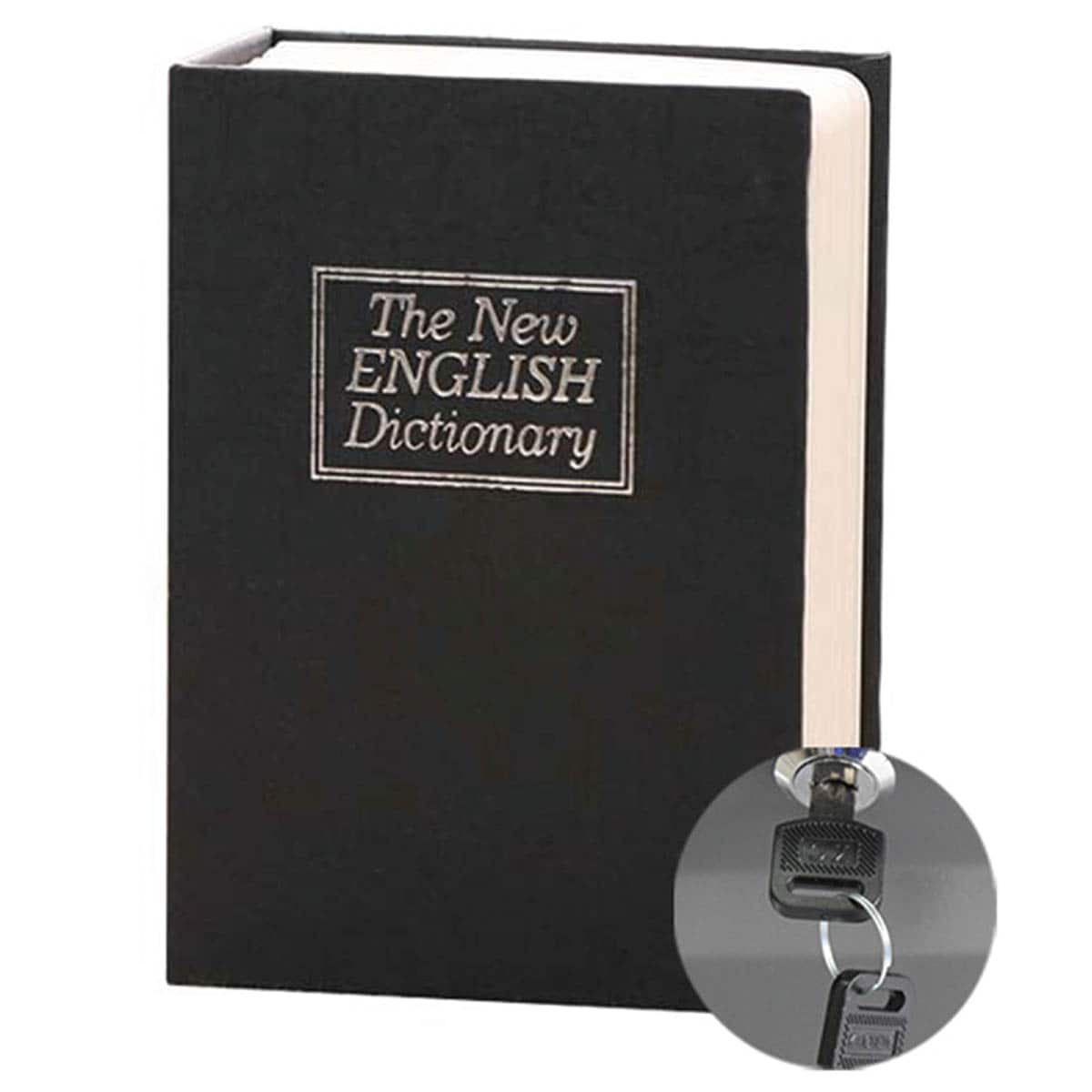 パッと見ただけでは金庫だなんて想像も付かない!?英語辞書そっくりのデザインの金庫!本棚にそのまま置けば、金庫だと気づかれないので安心◎