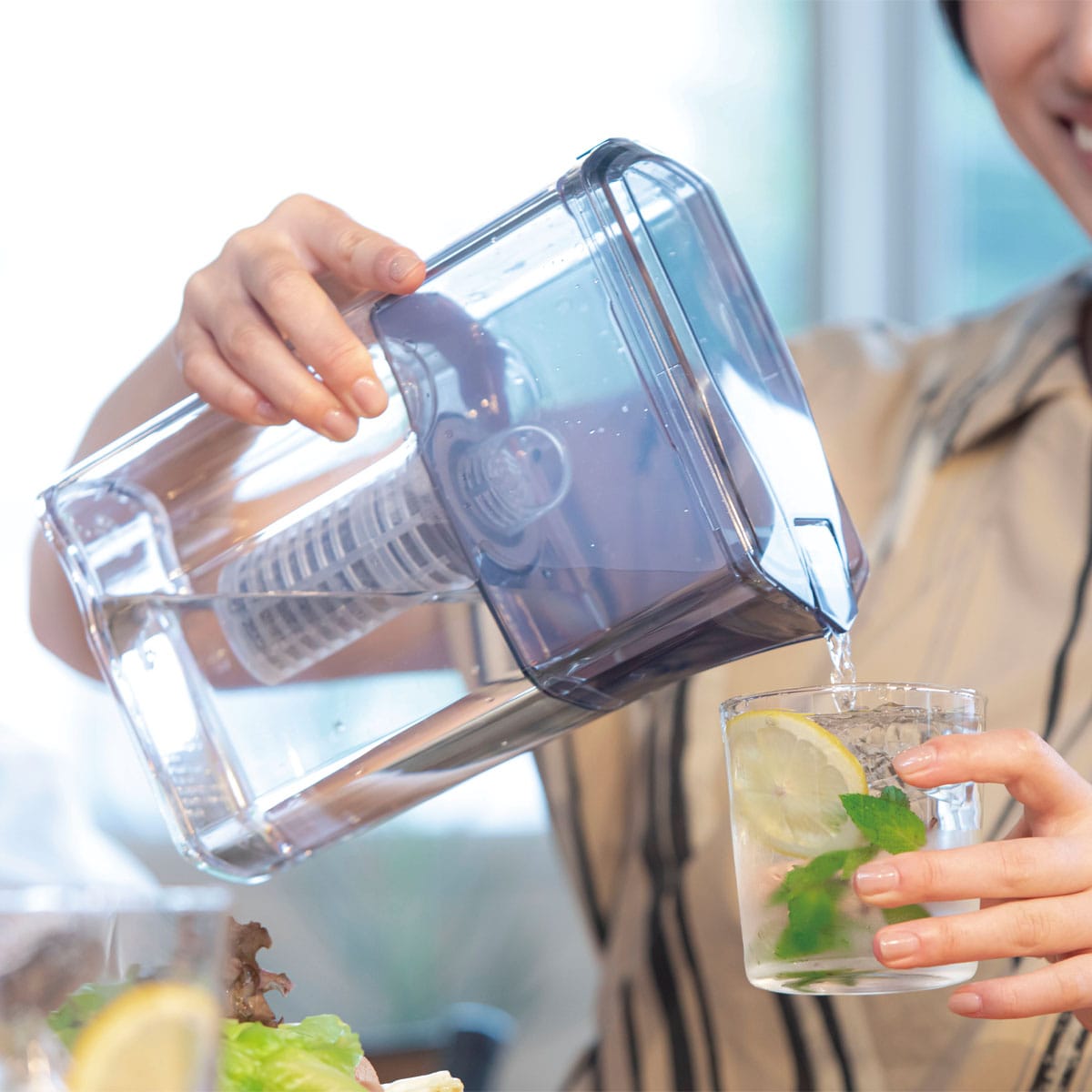 水道水が美味しくゴクゴク飲める、ポット型浄水器。非常に微細な活性炭の力で水道水の残留塩素やトリハロメタン、汚れ、臭いを徹底除去。余計なものを一切添加せず、水道水を元の状態に戻すことを第一に、日本の食事に合う滑らかなお水がどのご家庭でも簡単に作れます。カードリッチは1本で半年以上使用できます。(1日2リットル使用の場合)ろ過流量国内トップクラスの400リットル!交換の手間を減らし、長くお使いいただけます。