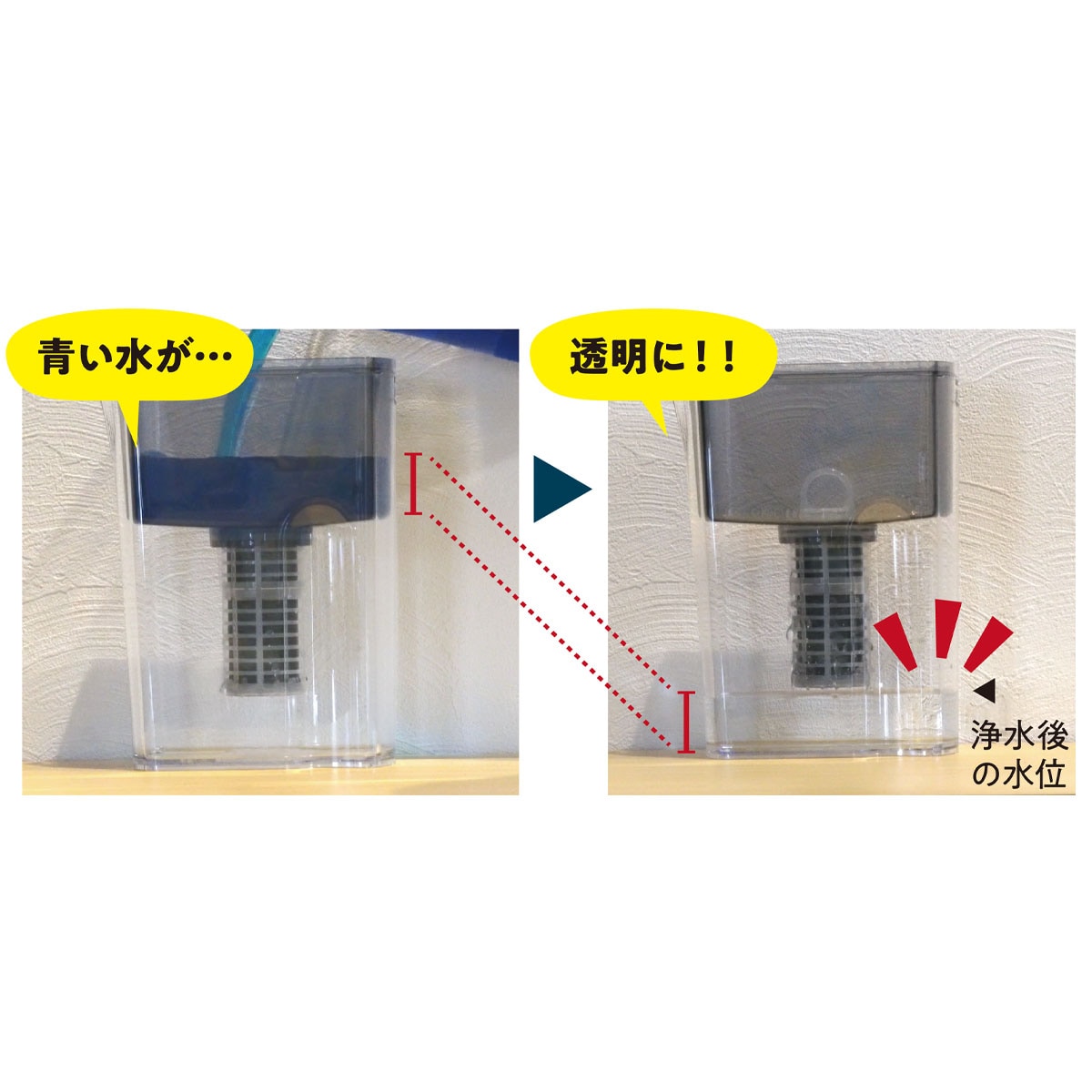 水道水を注ぐだけ!美味しい水が4分※で出来上がります。(※800ml)PEAS(PFOS/PFOA)除去でき、本体には専用カードリッジ1本付属しています。