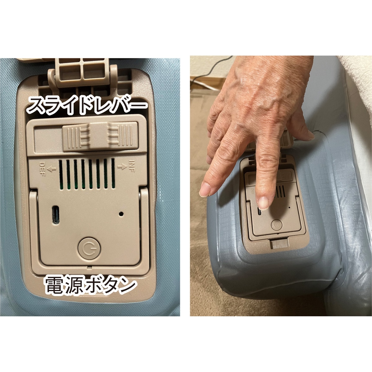 充電式なのでコンセントを気にせず設置でき、移動にも便利。寝室やリビングなど家中どこでも使用できます。エアーポンプは本体から取り外して充電可