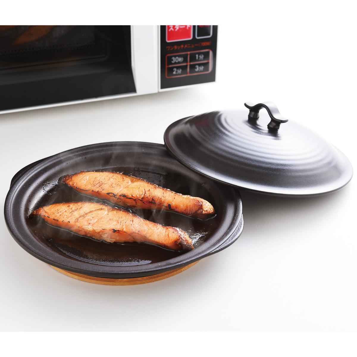 電子レンジから照射されるマイクロ波を吸収し、調理器自体が熱をもつことで、火を使っていないのに焼き魚などをこんがり調理できます。時短にもおすすめ。