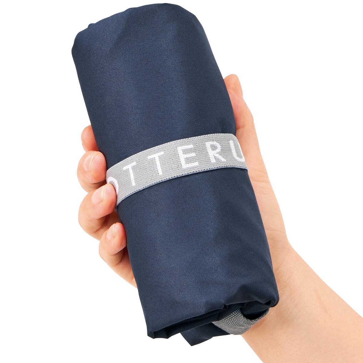 ネイビーゴムで留めるとコンパクトに。持ち歩きもラクラクです。