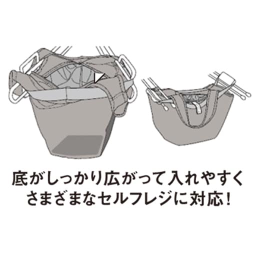 底がしっかり広がって入れやすく、さまざまなセルフレジに対応。※セルフレジの種類によっては使用できない場合があります。