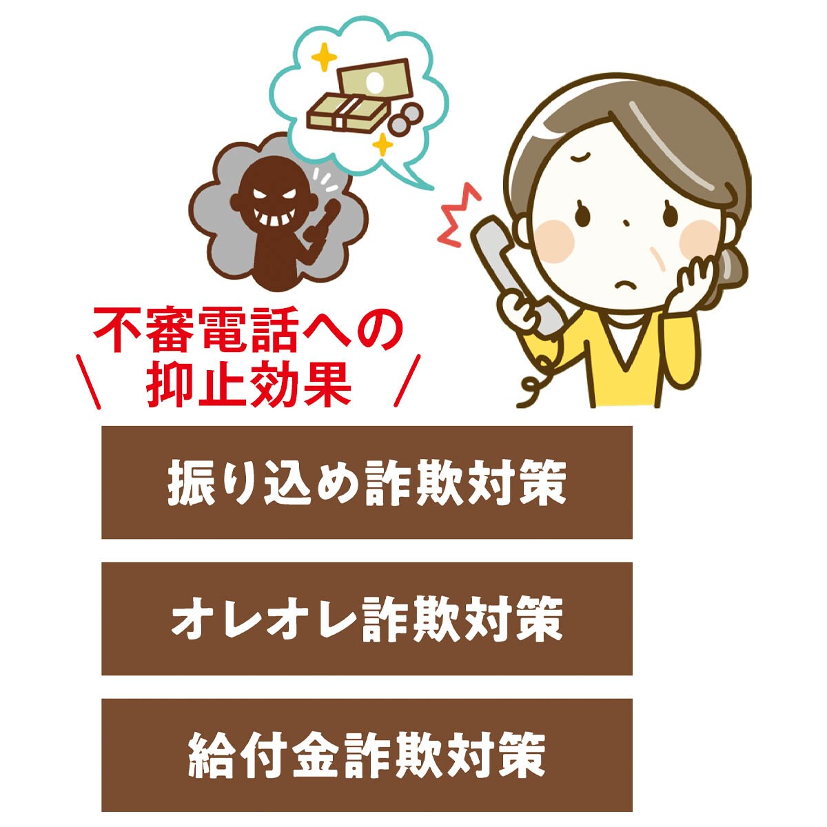 今ある電話機にカンタン取り付け出る前に自動で警告メッセージ