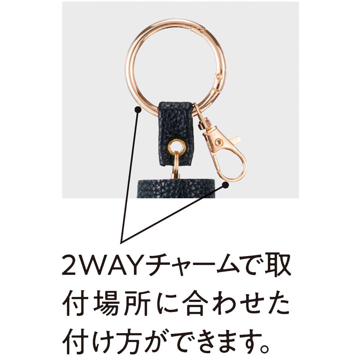 2WAYチャームで取付場所に合わせた付け方ができます。
