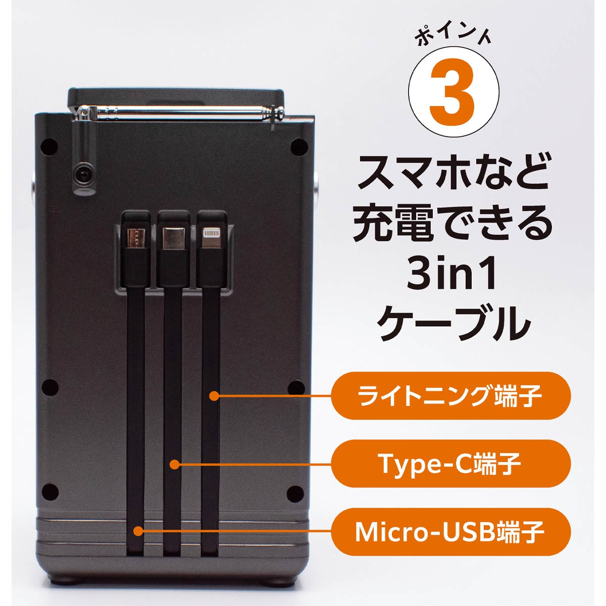 発火しにくい!長寿命!リン酸鉄リチウムイオンバッテリー採用! FMラジオ機能付き