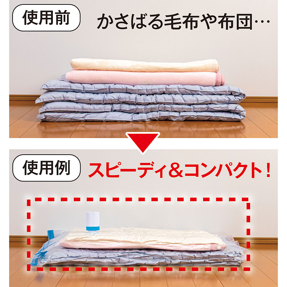使用前かさばる毛布や布団… 使用後スピーディ&コンパクト!