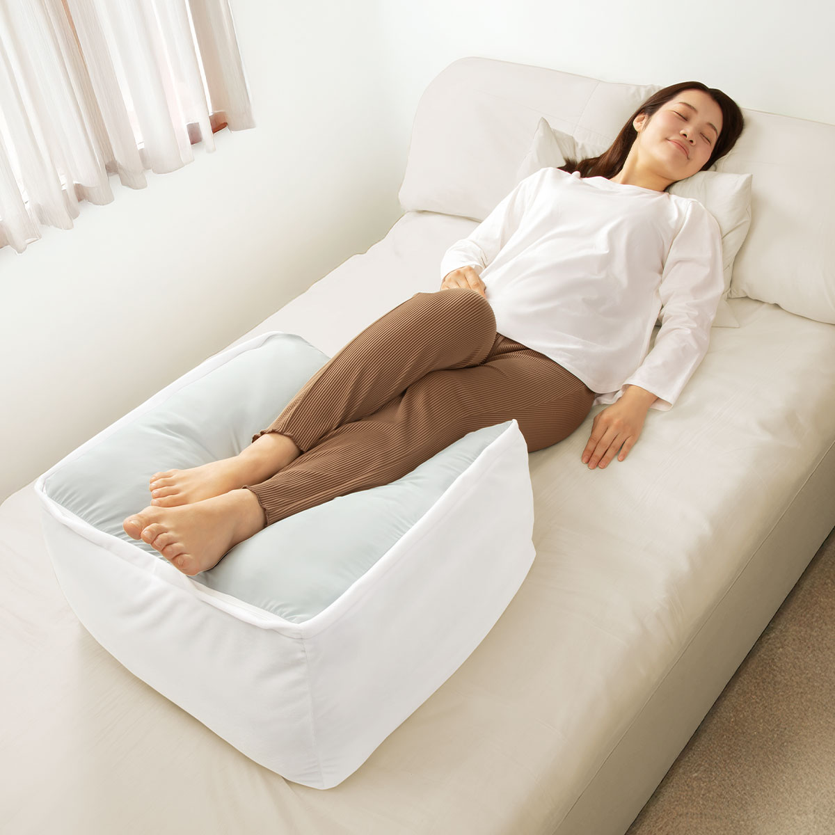 布団収納袋が足枕に!さらっと生地とふわっと生地の2WAY使用で好みに合わせて使い分けができます。