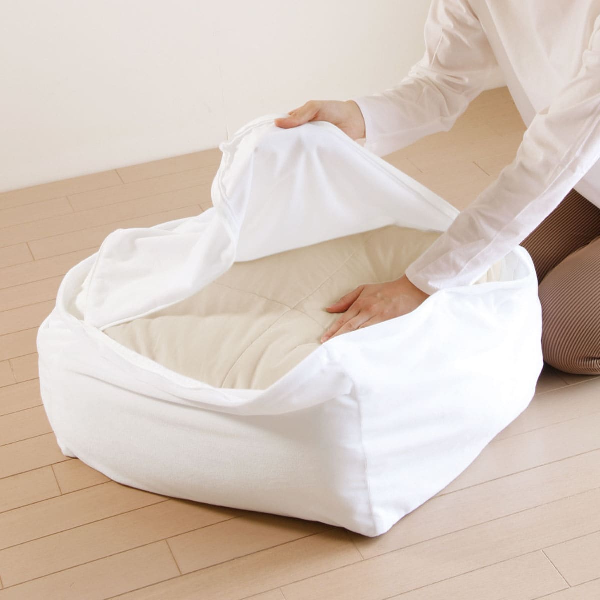 ■[白生地]ポリエステル100%[グレー生地]ナイロン90%、ポリウレタン10%■サイズ(約cm)/50×50×28■収納目安/シングルサイズの掛け布団●洗濯機OK(ネット使用)●中国製