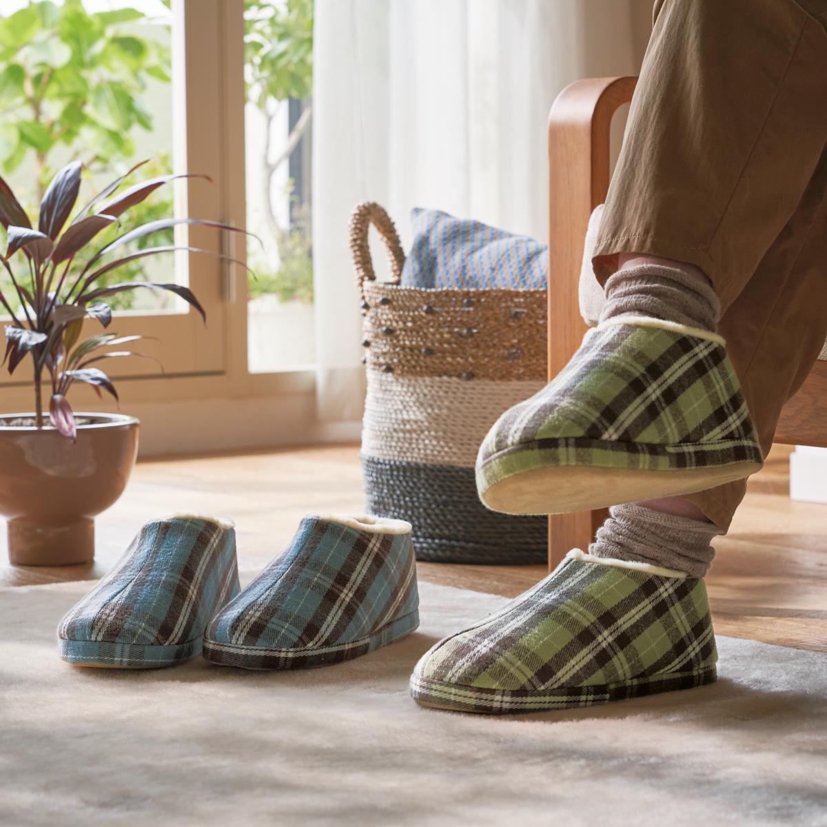 ブーツタイプでぬっくぬく♪くるぶしまでスッポリ!厚めのソールで床付き感や冷感を防ぎます。