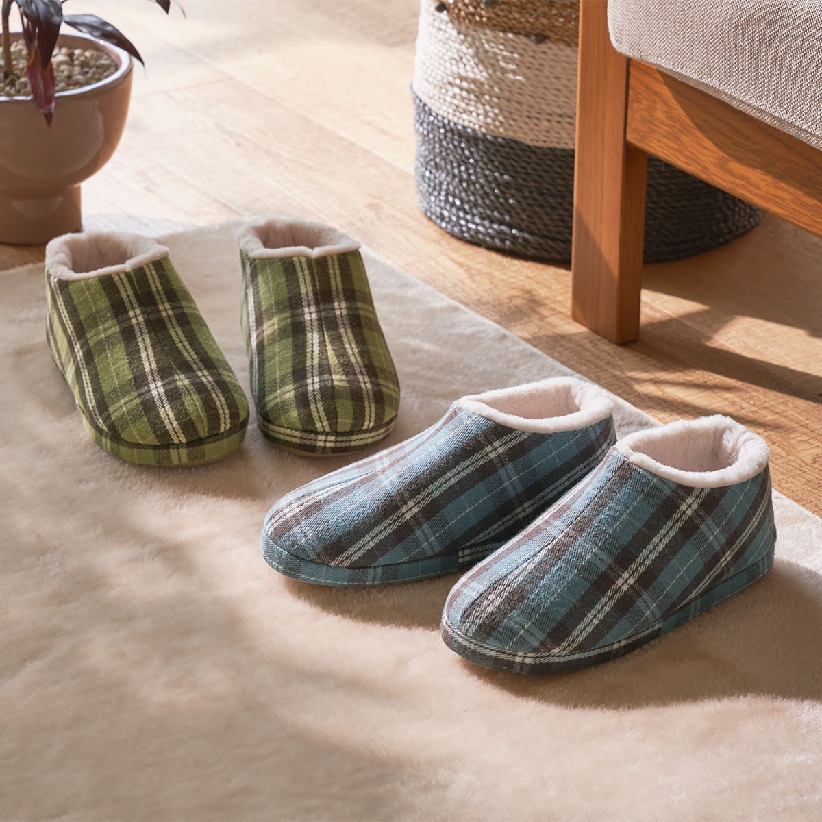 (左から)ブルー・グリーンくるぶしまでスッポリ、ふわモコルームブーツです。